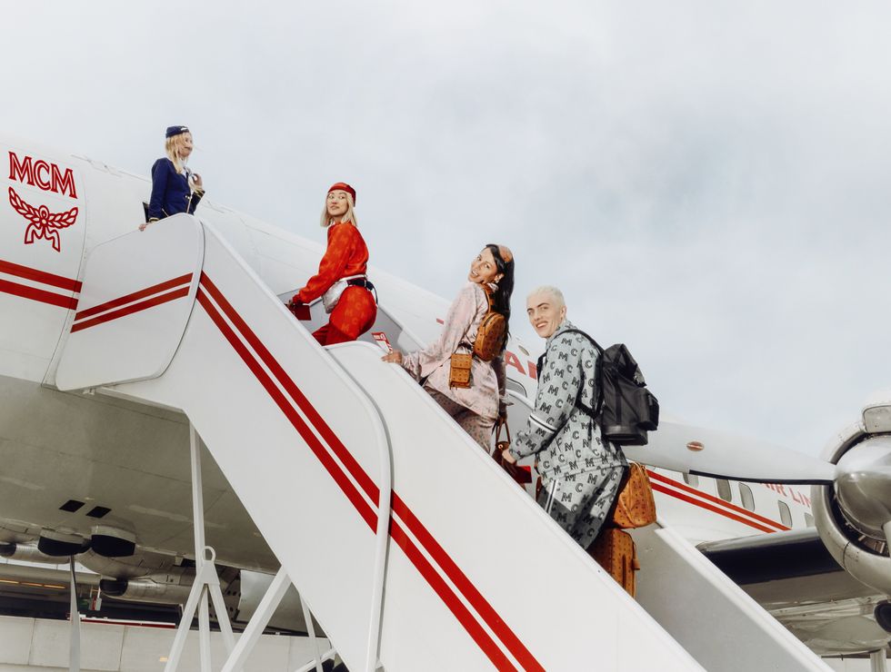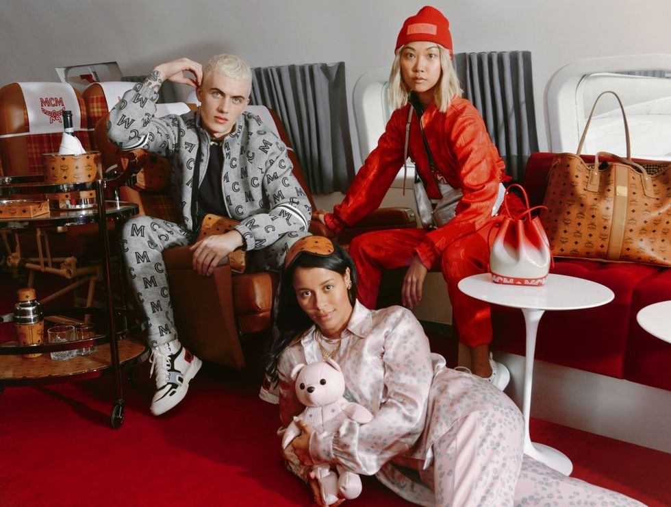 Globe-trotting influencers Tanner Reese, Vanessa Hong and Sami Miro hang out in the international departures lounge decked out in MCM-branded gear, including logo tracksuits, sneakers, and the brand's iconic Visetos-print luggage. Once they board the plane, their flight turns into a full-on dance party complete with a live DJ and glasses of champagne as the passengers await their next destination.