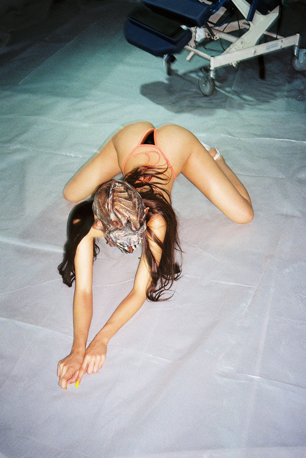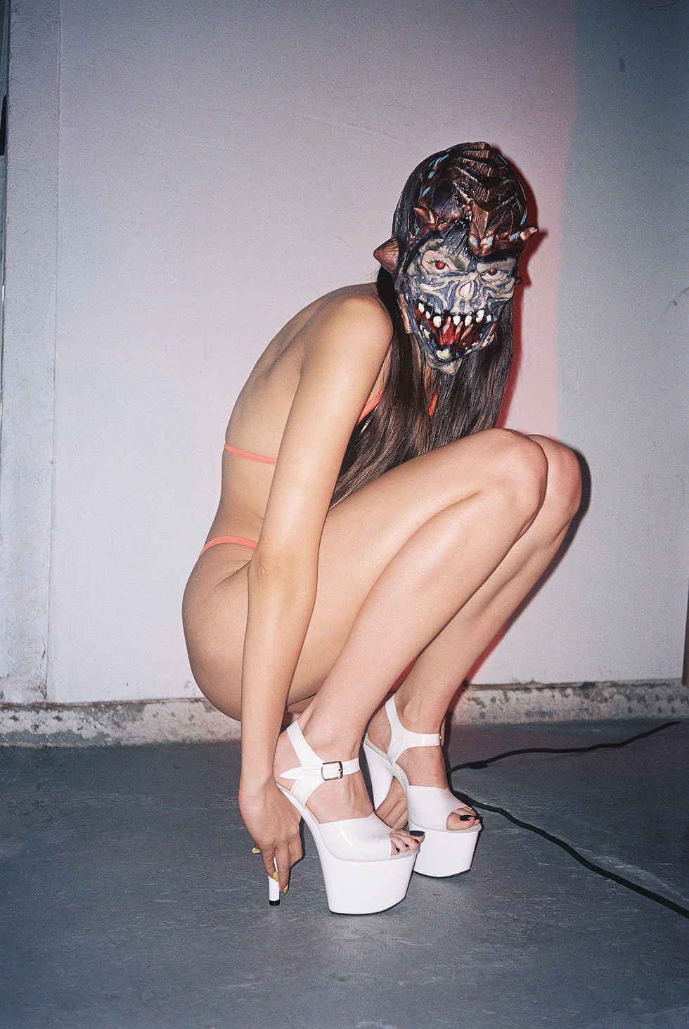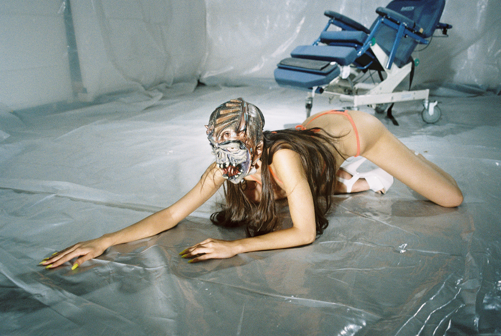 Starring MEATY and his female partner-in-crime, "Mary" cuts between the two of them toying with another faceless individual and writhing around a dark room — flanked by a masked gang of hype girls, of course. But coupled with chaotic, herky-jerk camera movements and Connor Childs' brilliantly blown-out spotlight, the result is simultaneously sinister and scintillating. Like watching a sexed-up serial killer at work, if you will.