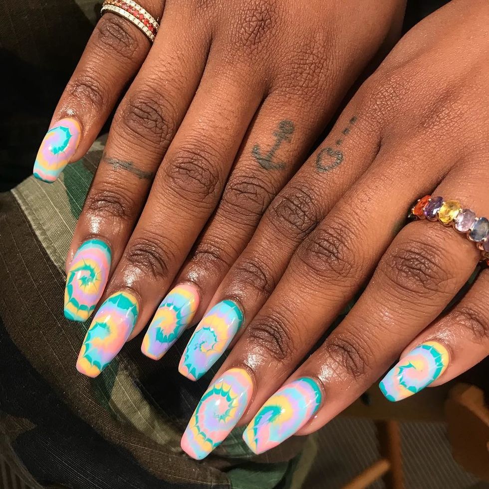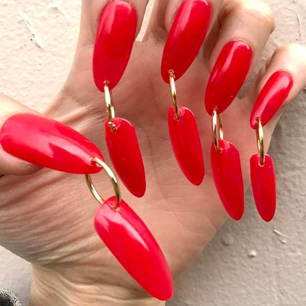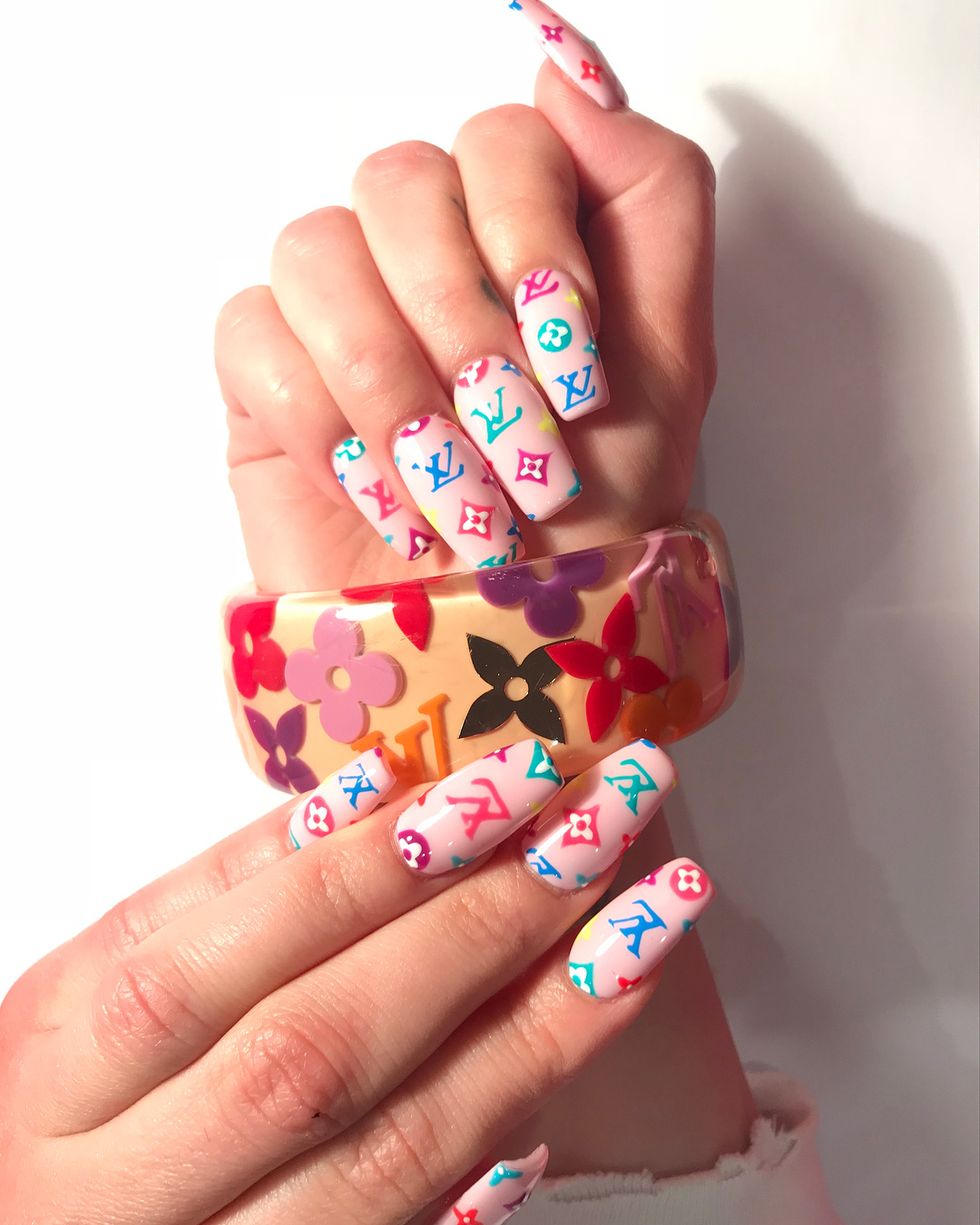 I think the stones, the chunky crystal trend, needs to end. My favorite trend now is more the vintage looking, 90s, crazy, classic marble. I want to bring back more of an old school model. I think square is still cool, but I also really like super pointy. I'm done with coffin probably. I love a flat, square style.