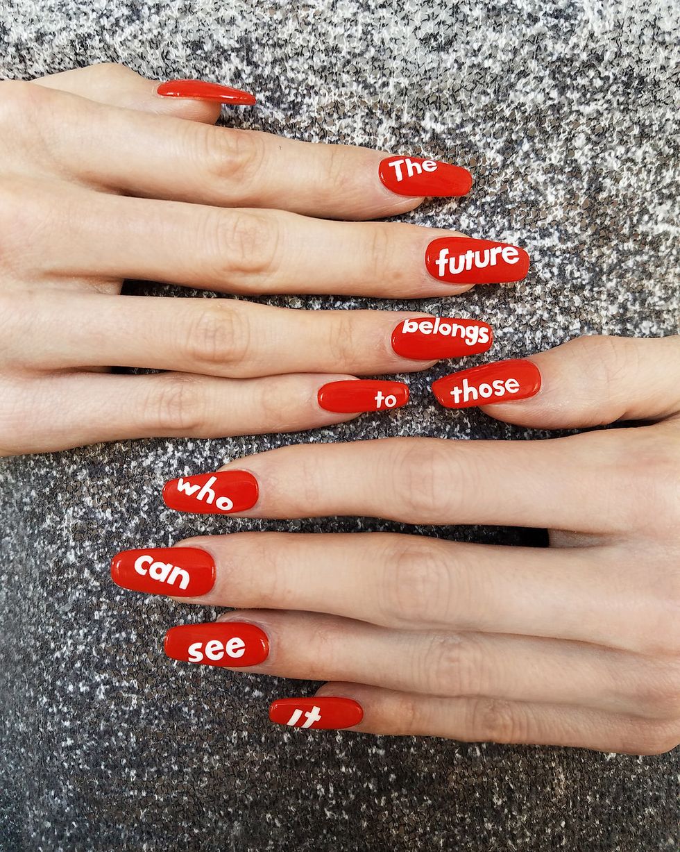 For a photoshoot or fashion show, 70 percent they have a plan for the nails. They plan it out with the makeup and the clothes. I try to have a bigger vision, but for each work I change my brain and try to be flexible.