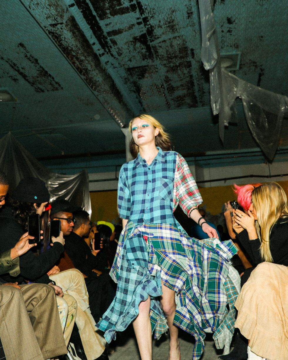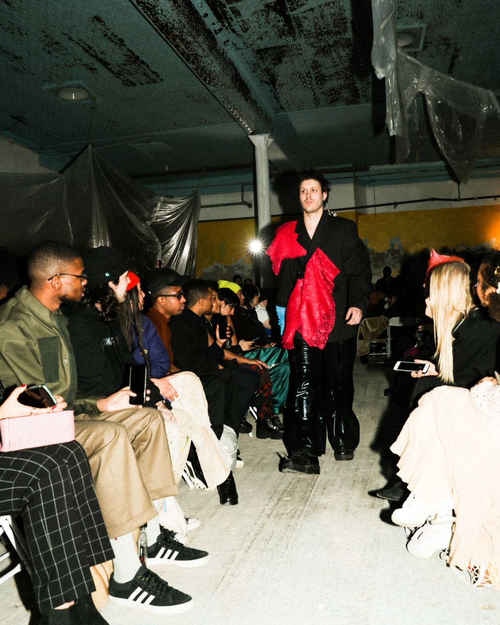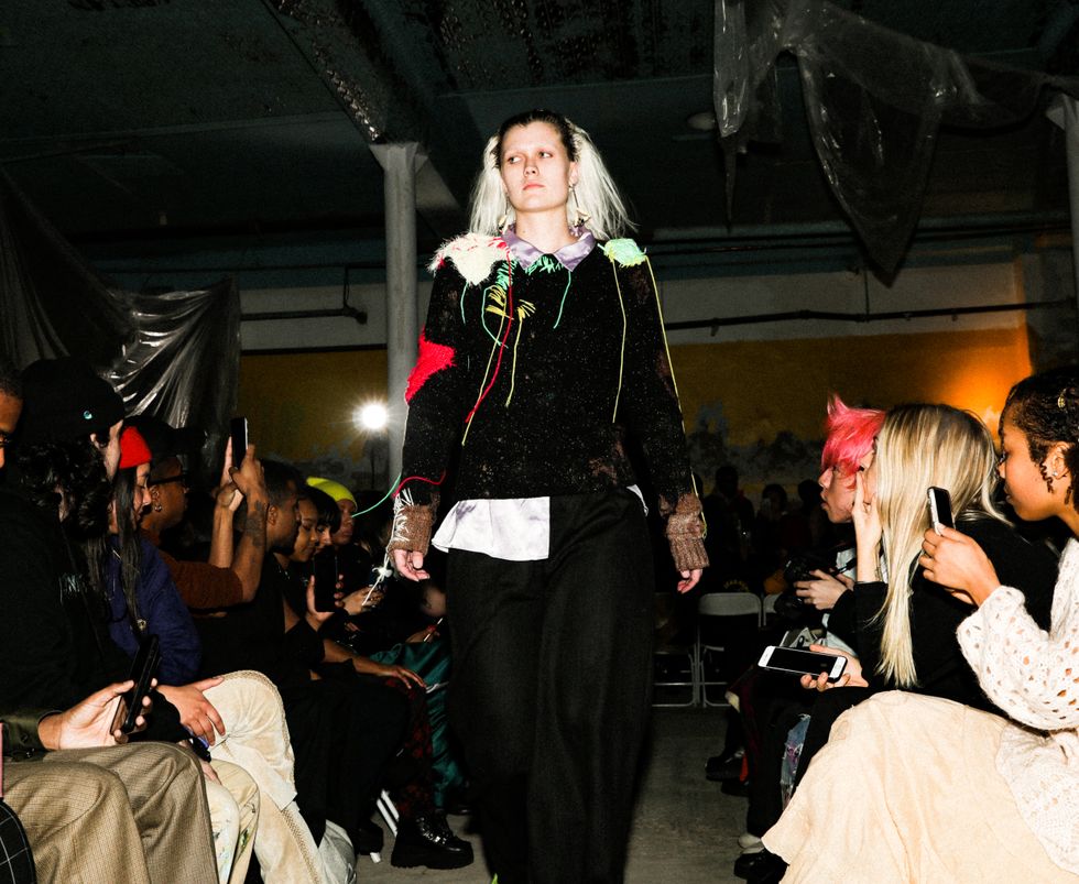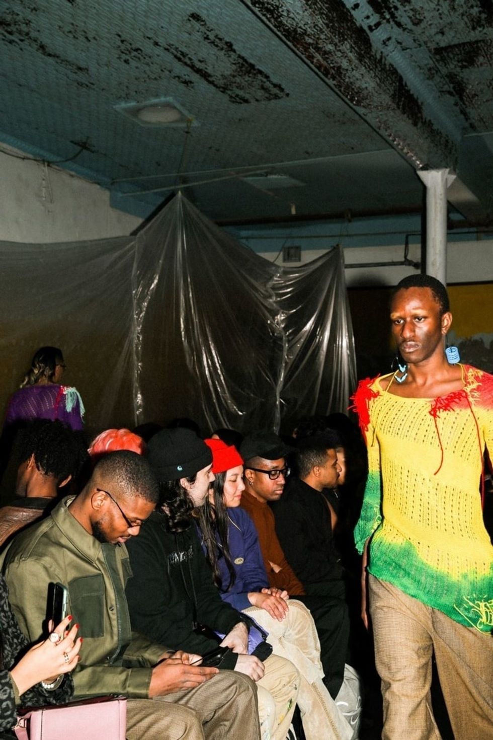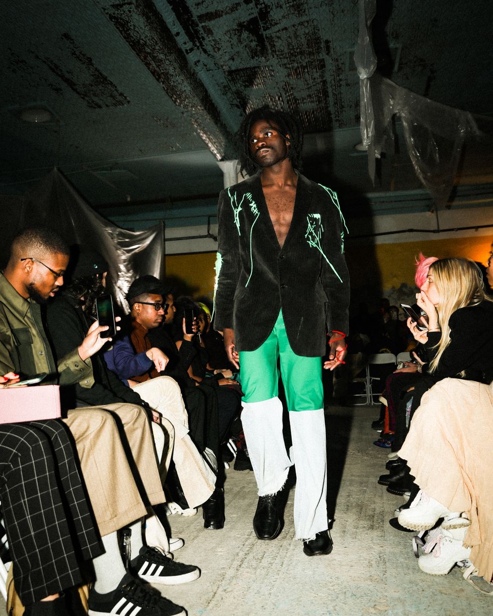 "For this year's collection, I wanted [it] to be reminiscent of the kinds of people I would see going to my favorite [Brooklyn] techno clubs on Broadway and Myrtle, wearing shiny trashbag-like bottoms with tight tops," he explains. And as for casting, Rose broke away from his usual method of finding models on Instagram, and cast people on the street and subway who caught his attention.