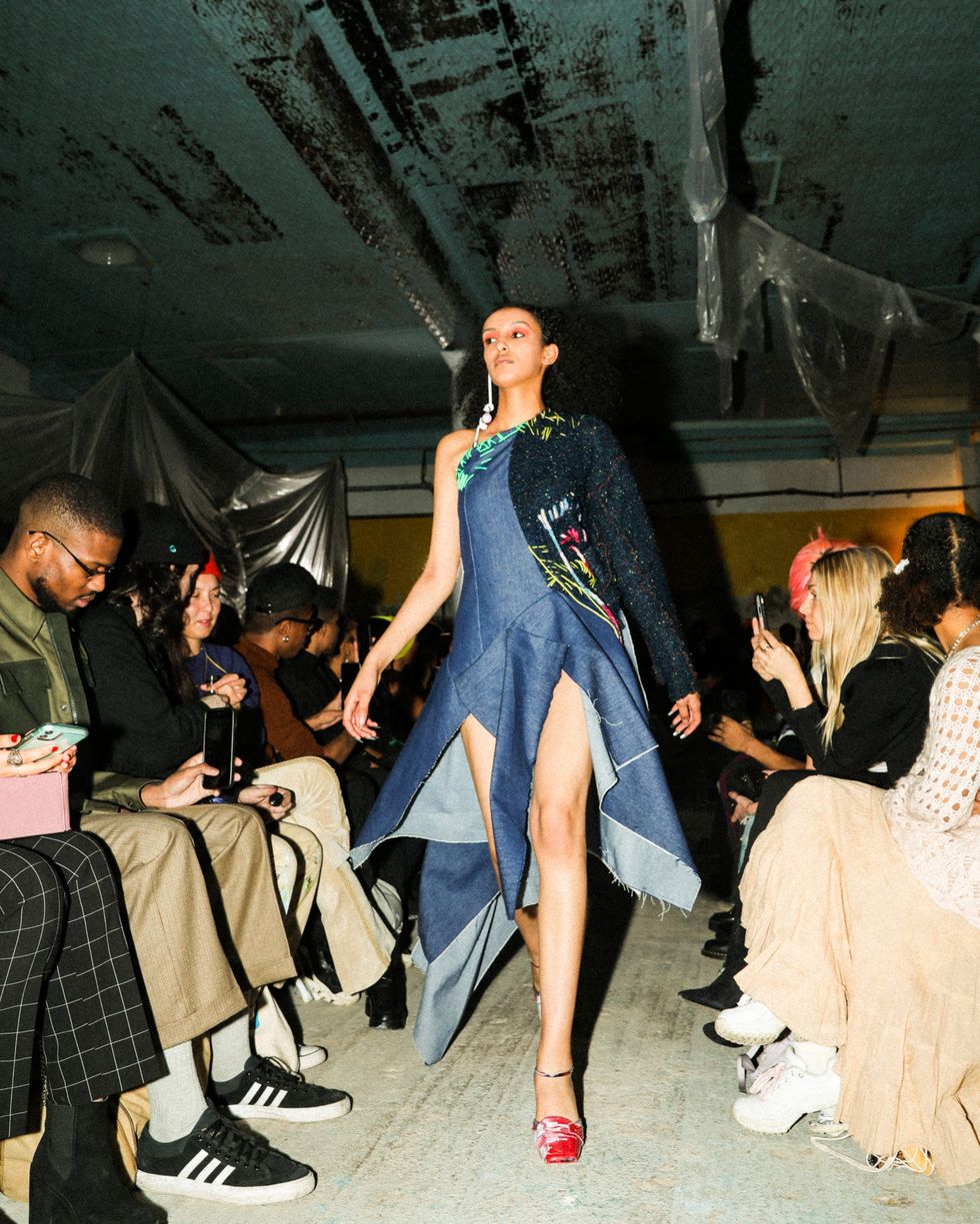 To create the looks, Rose counted on the people closest to him, including his partner Hilldana Lorenzo, who assisted with crocheting, and Tookie Hong, the designer's longtime stylist. The playful looseness of the collection's presentation — from pairings of ripped multi-fabric denim with torn jackets and sparkly tops — can be partially attributed to Hong, whom Rose says "always delivers."