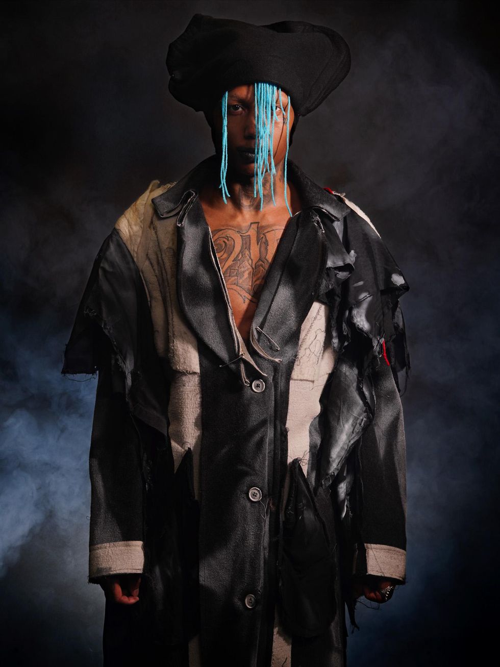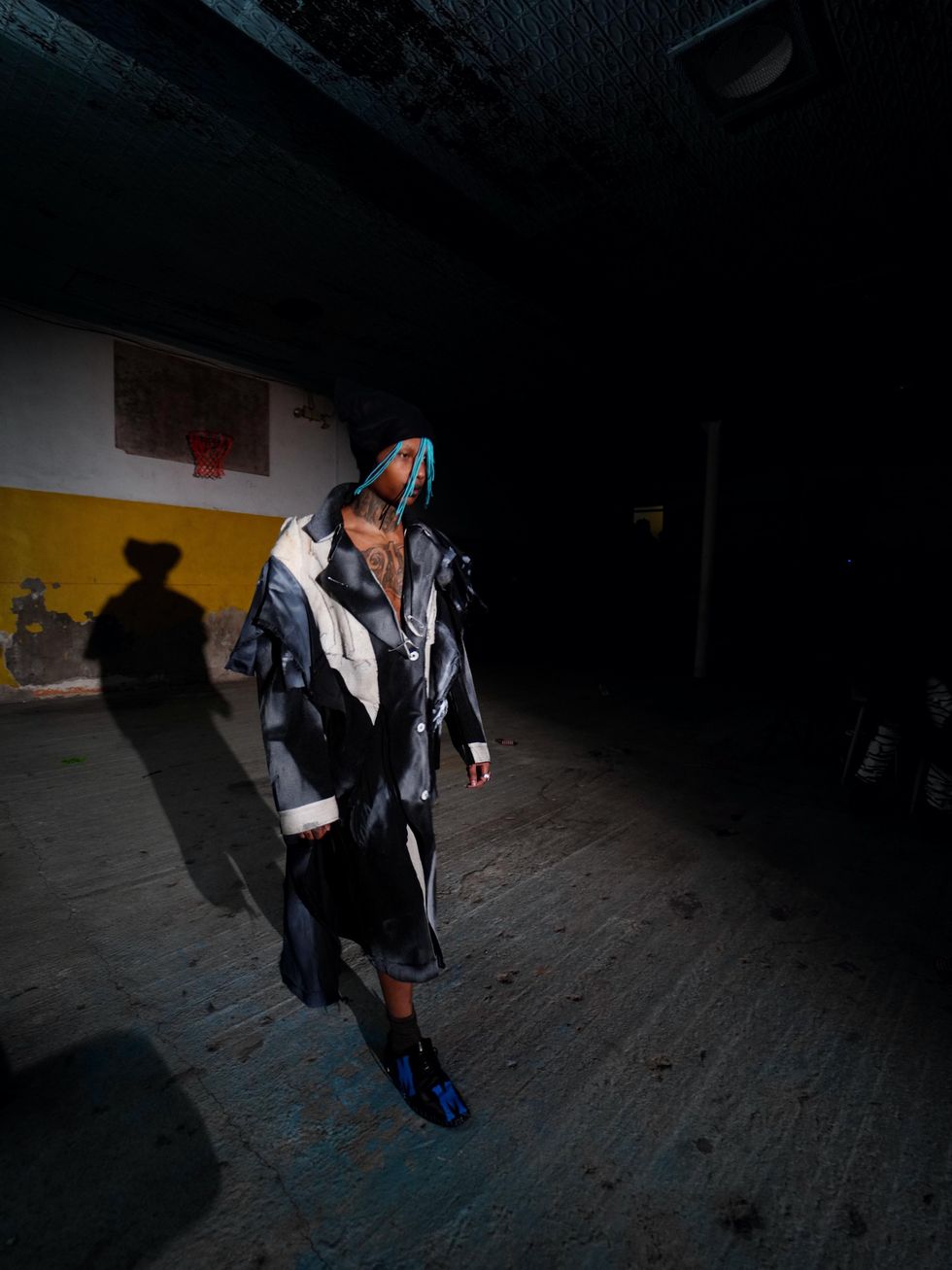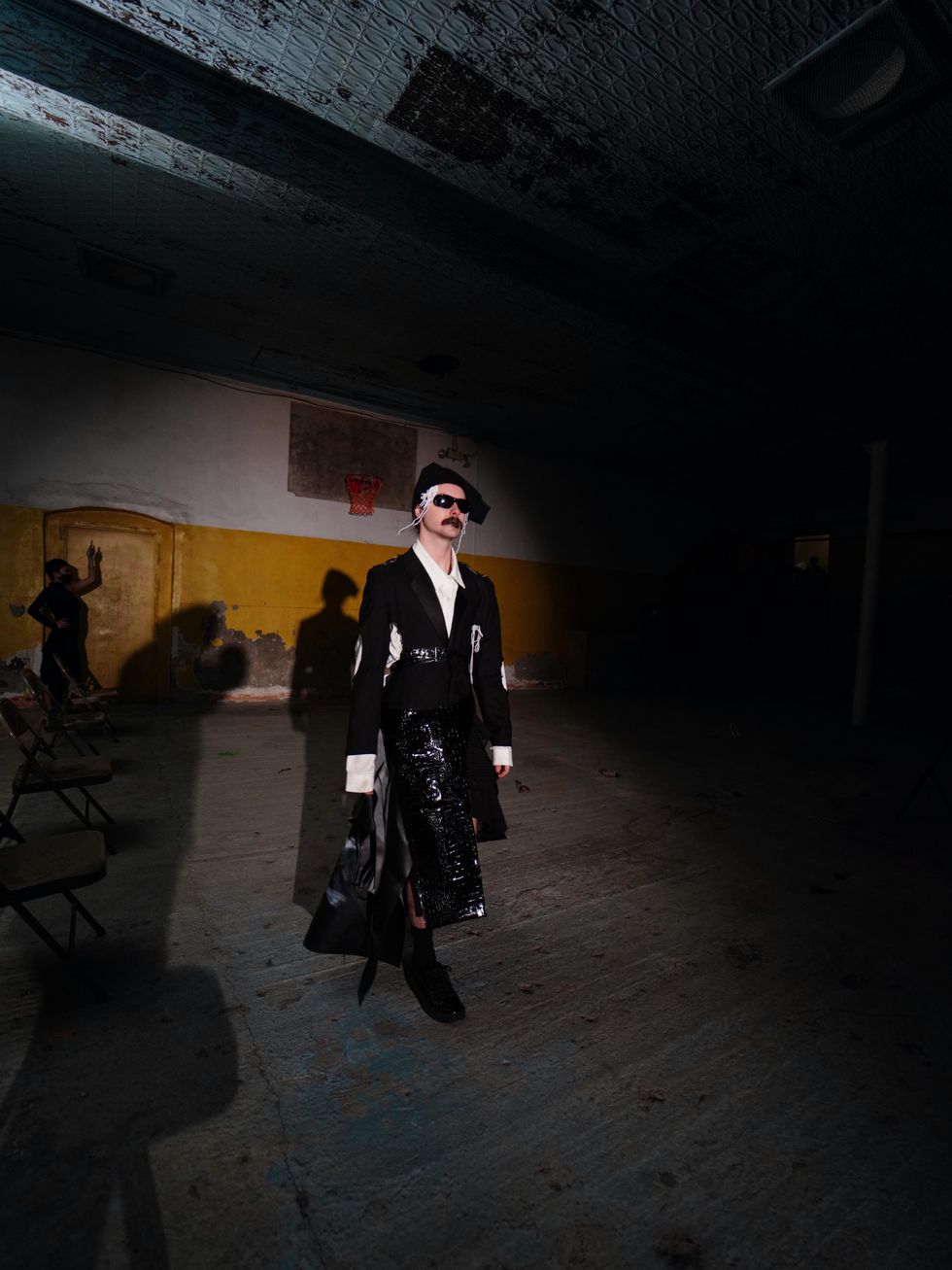 Menyelek Rose has been known in the New York fashion scene for fresh, oddball silhouettes and pops of color in his designs. But for Fall 2022, he's decided to take his label in a different, darker direction.