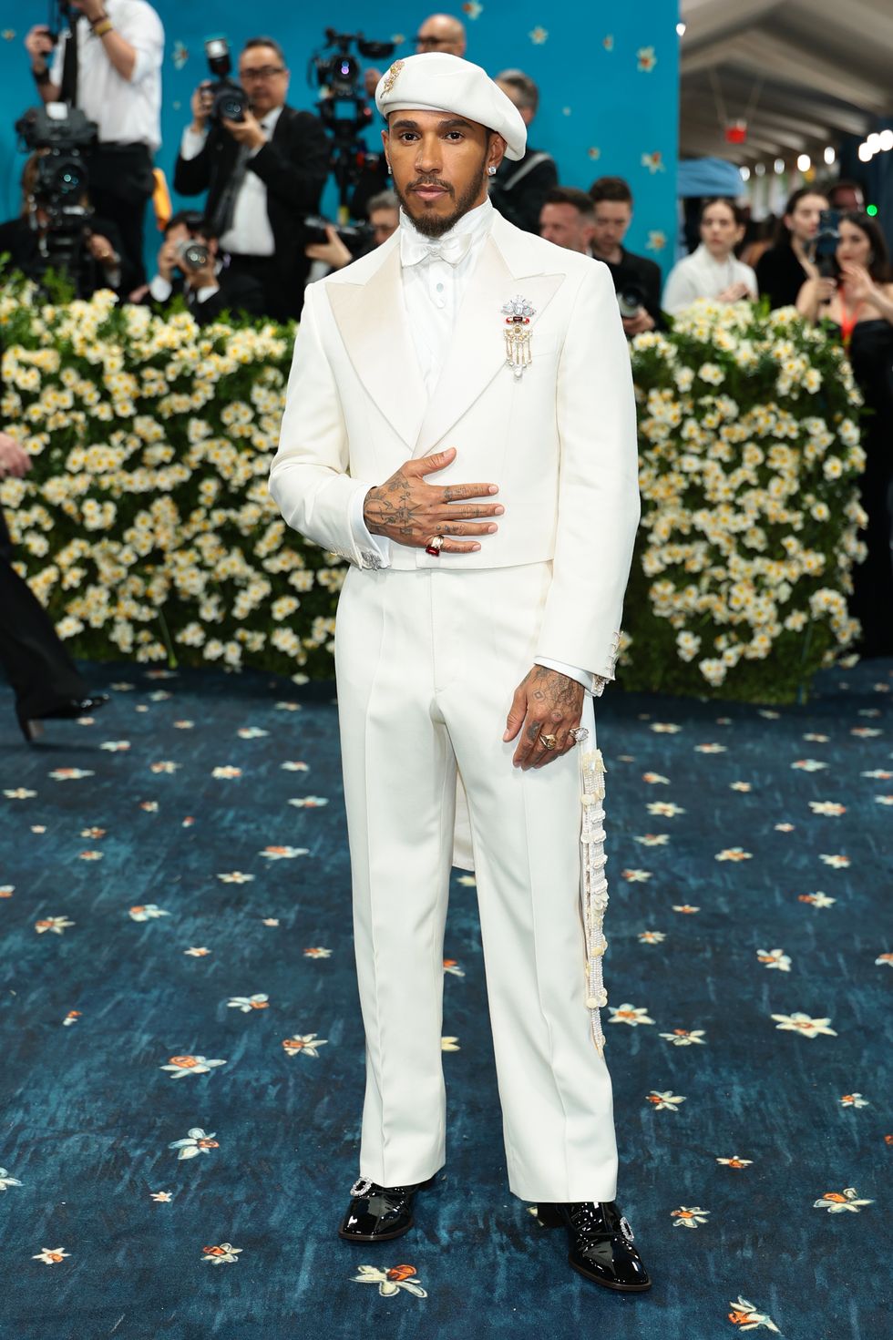 One of the strongest showings tonight was courtesy of Wales Bonner, with co-chair Lewis Hamilton showing up alongside Colman Domingo and Anna Wintour in a stunning cream ensemble. It’s no wonder he was selected as co-chair, having himself pioneered eccentricity and individualism on the F1 circuit. Simply put, he became a worldwide phenomenon not just for his racing skills, but singular fashion sensibility that completely transformed the sport and its reputation forever. I had high hopes for his night at the Met, and he succeeded them by far. As he wrote on Instagram: “This year's theme speaks to royalty, spirituality, and the sacred power of adornment. Materials like ivory and cowrie aren't just beautiful — they carry ancestral memory. They are markers of identity, protection, and reverence.”
