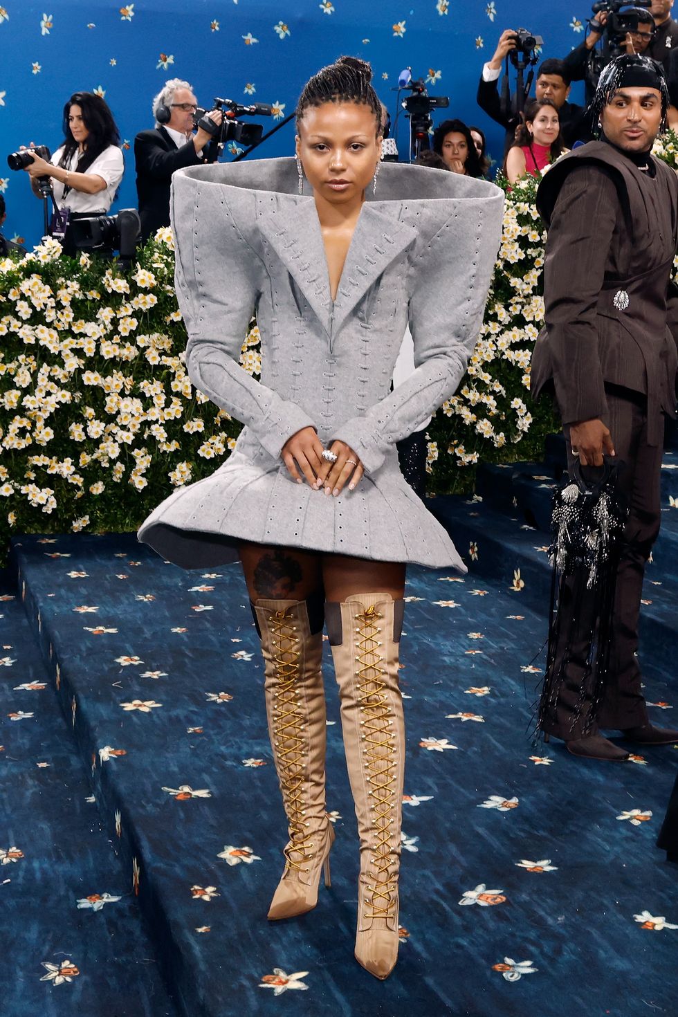 On the stunningly blue steps of the Met paraded a whole host of looks inspired by the year’s theme, "Superfine: Tailoring Black Style," inspired by Monica L. Miller’s 2009 book Slaves to Fashion: Black Dandyism and the Styling of Black Diasporic Identity. As always, some took the theme more on the nose, playing around in the dandy sandbox, while others utilized the skills of Black creative directors, stylists, designers and more to create their outfits.