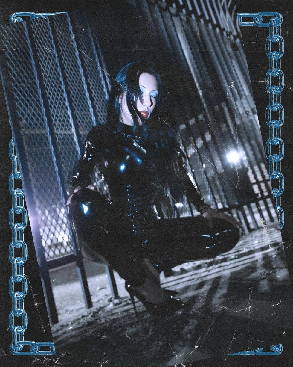 In the single’s visual we see Carucci, as if from our knees, as they strut down an undisclosed city street in a latex catsuit. In stark cuts, Carucci transports from city to forest, where we find them scrambling through lush foliage and falling to their knees in prayer. Swapping their dominatrix leash for a black prayer veil, Carucci juxtaposes power in each space, effacing the individual in the presence of the universe.