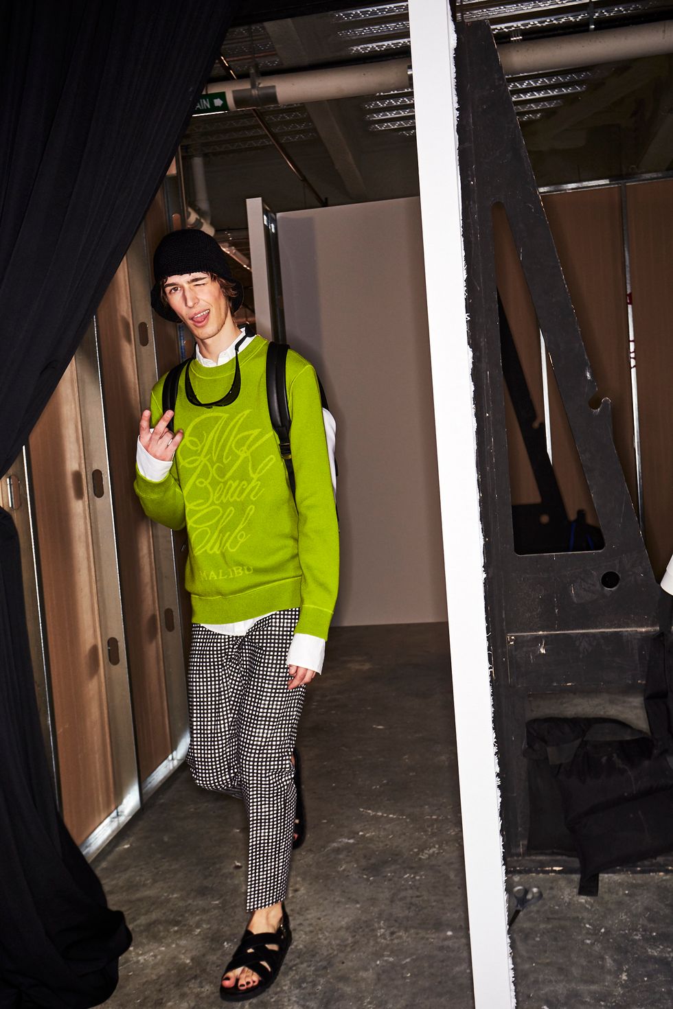 The phrase "MK Beach Club" in script font was impressed into leather and canvas handbags, knit into lime green sweaters, and applied to turquoise beach towels. With locations like Malibu and St. Tropez emblazoned below, far-flung getaways were front of mind for the designer who's known for his jet-set design sensibility.