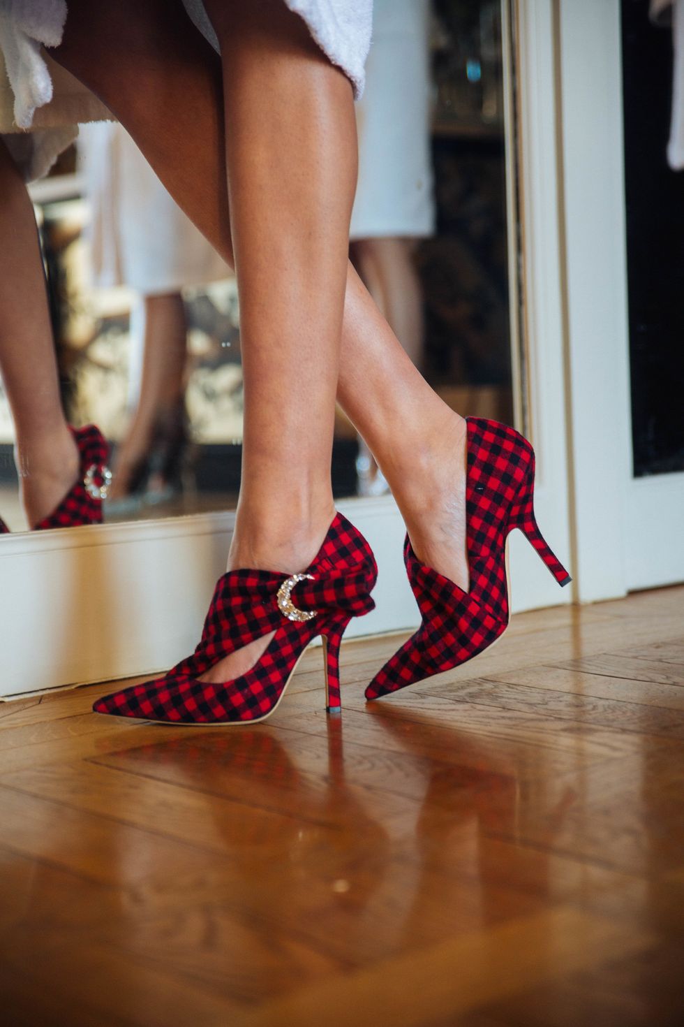 For fall 2019, the designer reinvented her classic options such as kitten heels and stilettos and also introduced ankle booties, thigh-high boots, and new flats. She also used pinstripe fabrics and printed some of the shoes with buffalo check print (a new trend, judging by Marine Serre and Dior's latest collections). You can find Midnight 00's shoes at MyTheresa and Matches Fashion, among others.