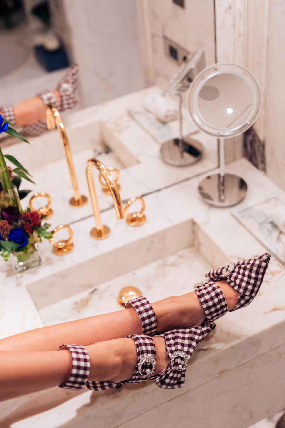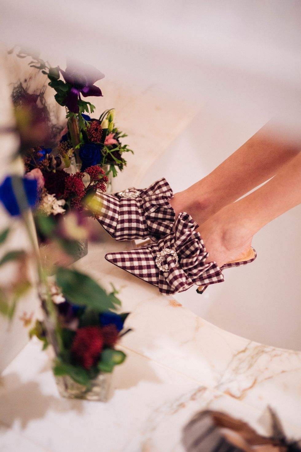In fact, the shoes, which mostly come in pastel shades, neutral blacks or the occasional signature white and black polka dot prints, look exactly like the kind of thing Marie Antoinette would wear in a modern world. That aesthetic, along with the dark romance of Soprano singer Maria Calaas, came together to inform Kokosar's fall 2019 collection — which was just presented in Paris at the Hotel de Crillon among the ornate gold clocks, stone statues and high ceilings.