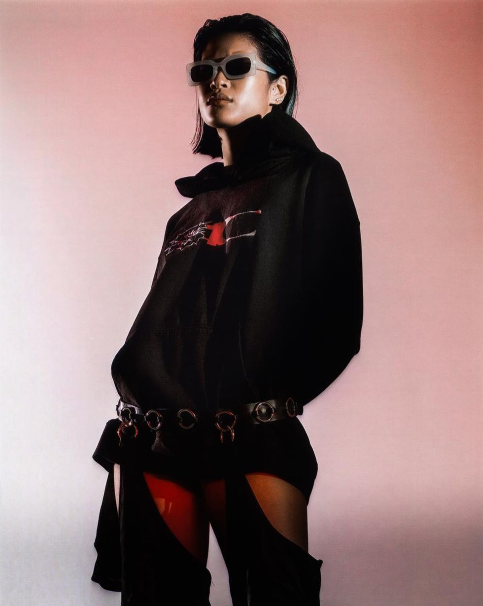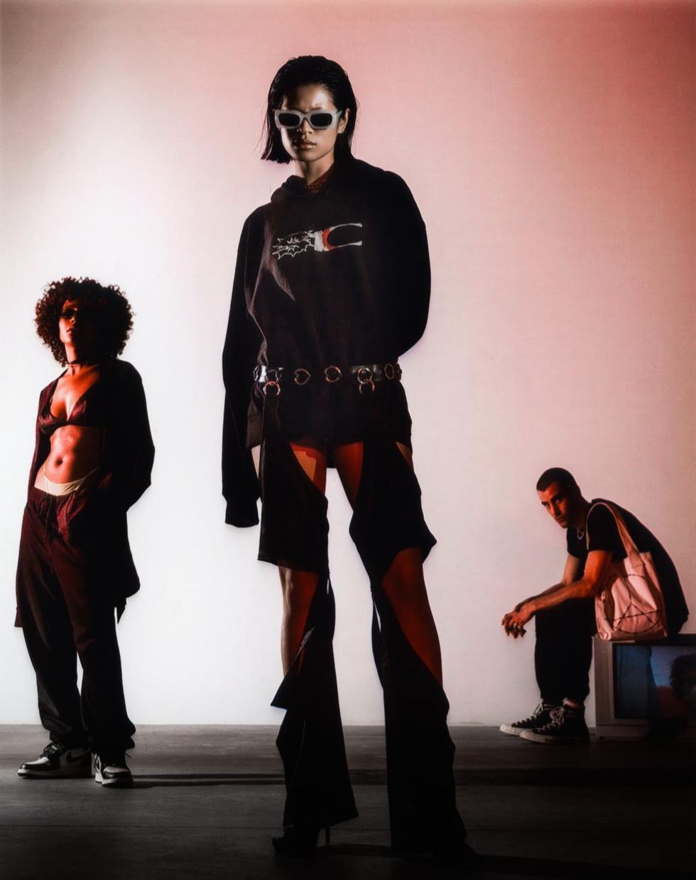 That sense of danger, tenacity and confidence is evident immediately at first glance, from the exposed thongs to oversized graphic sweatshirts and baggy trousers. In many ways, it's a reflection of Miguel's own approach to style, which saw him experiment a few times over the years but always with a strong and clear point of view.