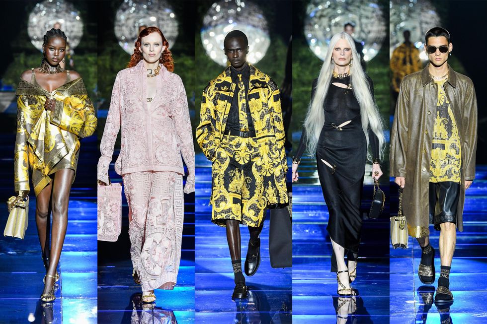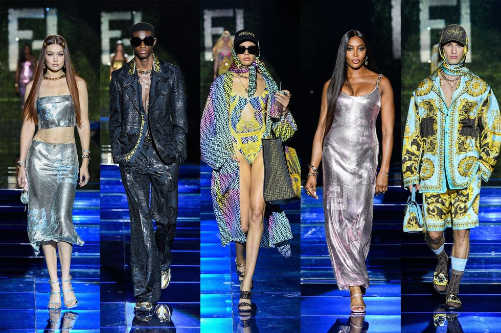 It was supposed to be a surprise on the final day of Milan Fashion Week, but reports surfaced earlier in the week that Versace and Fendi would hold a dual fashion show to present their new co-branded collection. The show was just that, divided into two parts: the "Fendi" portion was designed by Donatella Versace, while the "Versace" portion was overseen by Kim Jones and Silvia Venturini-Fendi. Each of them interpreted the other house's archives and signatures, which resulted in a cross-pollination of logos and prints. Naomi Campbell, Gigi Hadid, Shalom Harlow, Kate Moss and more supermodels made an appearance on the runway in front of the likes of Addison Rae and Niall Horan.