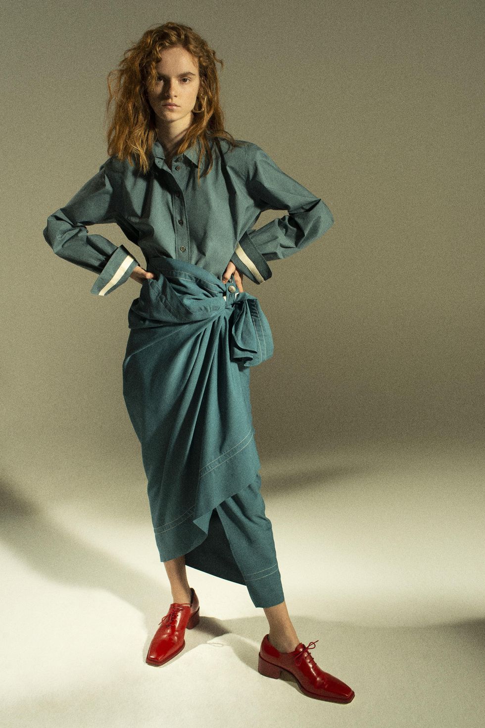 Womenswear creative director of Moncler 1952, Veronica Leoni, debuted her solo endeavor. The brand, Quira, presented a variety of silhouettes for SS22— tailored blazers, fluid draping blouses, slips skirts and loose dresses, knits with elongated collars and sleeves, and more. Leoni used textures and patterns of wool, extra light mohair, gingham tweed, and military cotton to round out the militant classics collection.