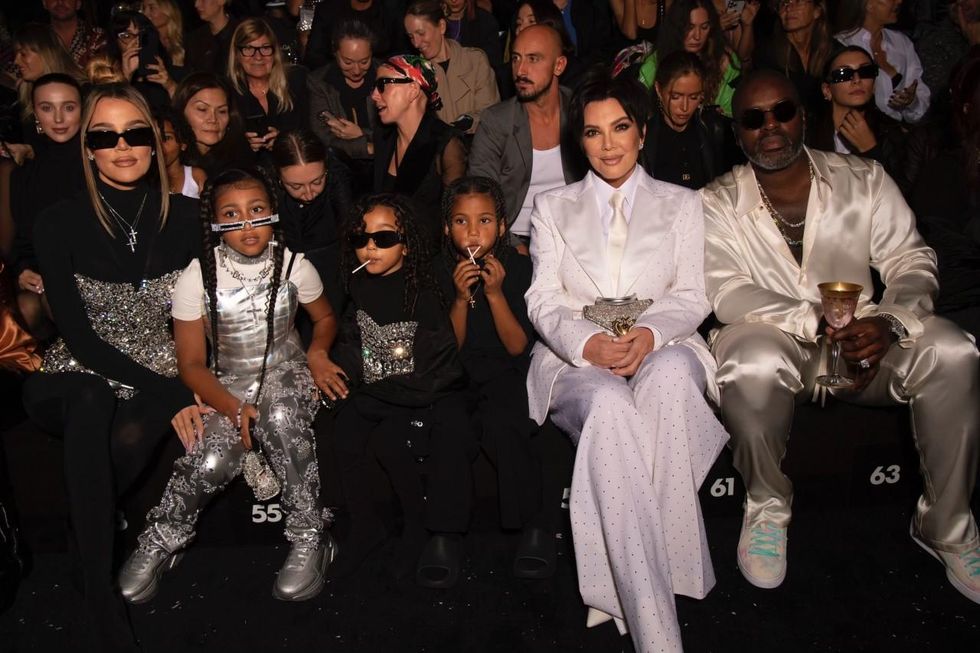 She curated the brand's Spring 2023 collection by selecting pieces from past collections (1987 to 2007, in fact) that the designers would then rework. Her three kids, Kris Jenner and sister Khloe all came out to support, each of them in their own D&G wares (the brand "hosted" Kourtney's nuptials to Travis Barker this year). A video of Kim eating pasta was projected on the runway as models came out in the vintage-inspired looks.