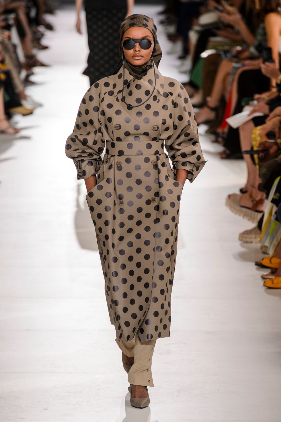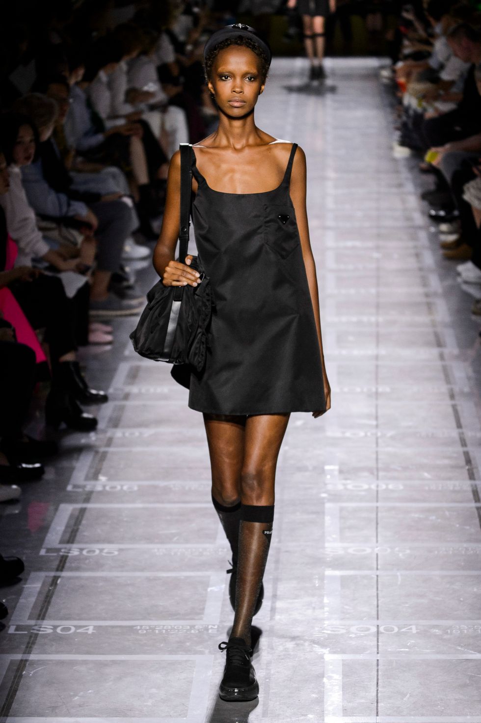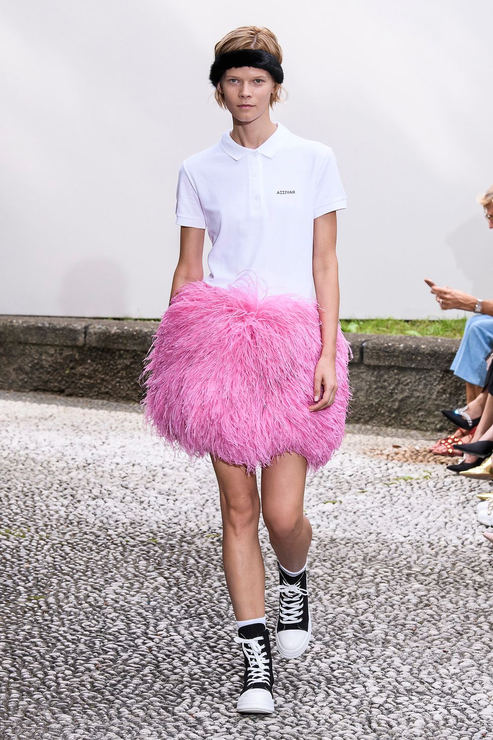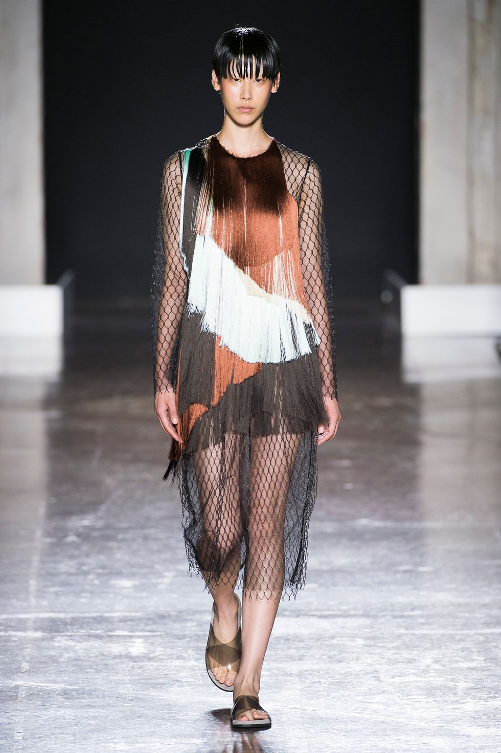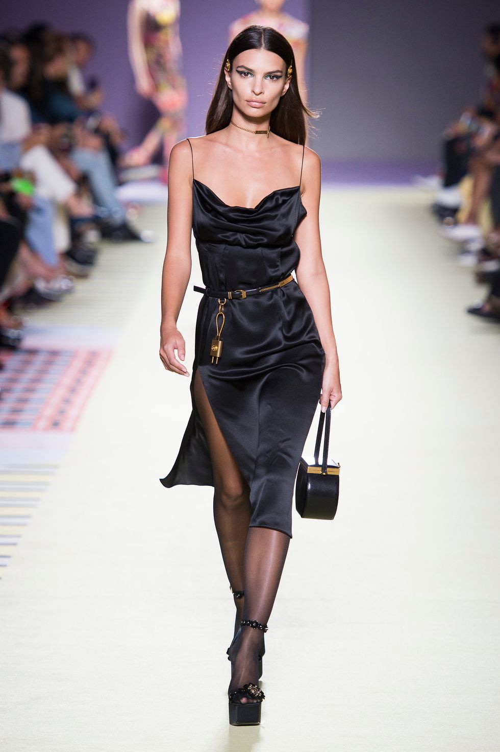 Eccentricity and sexiness went head to head during Milan Fashion Week. Iridescent fabrics, an implosion of prints, and kaleidoscopic tie dye motifs were entirely transfixing, while the little black dress and its fishnet counterpart preserved quintessential Milanese sensuality. Bridal veils (as seen in London) along with bike shorts and a healthy dose of ostrich feathers (as spotted in New York) have cropped up again, firming up the overall direction for spring 2019. See 10 of our favorite trends from MFW, below.