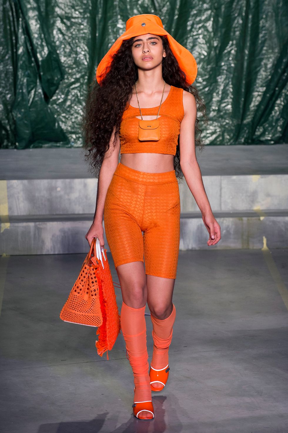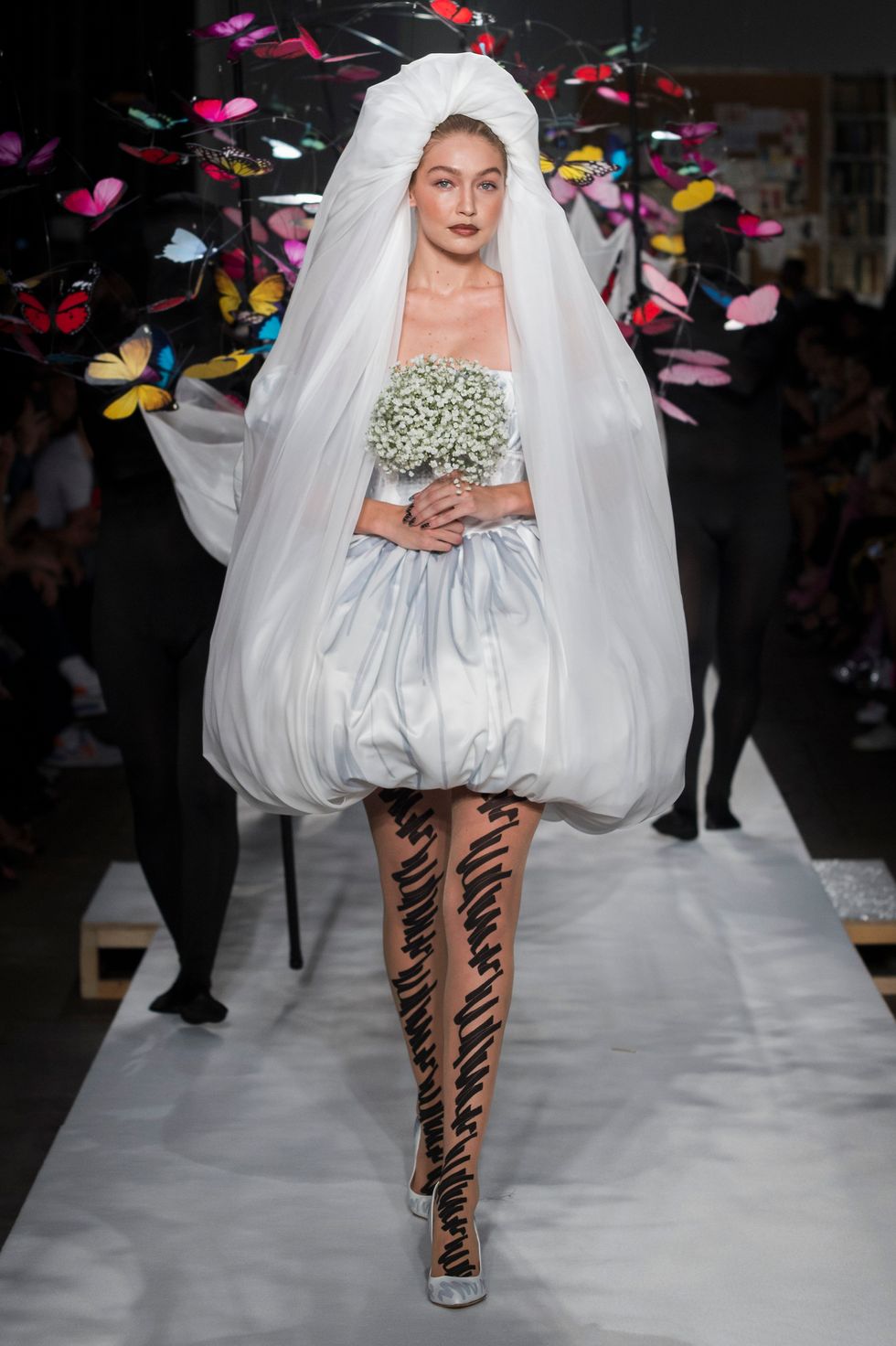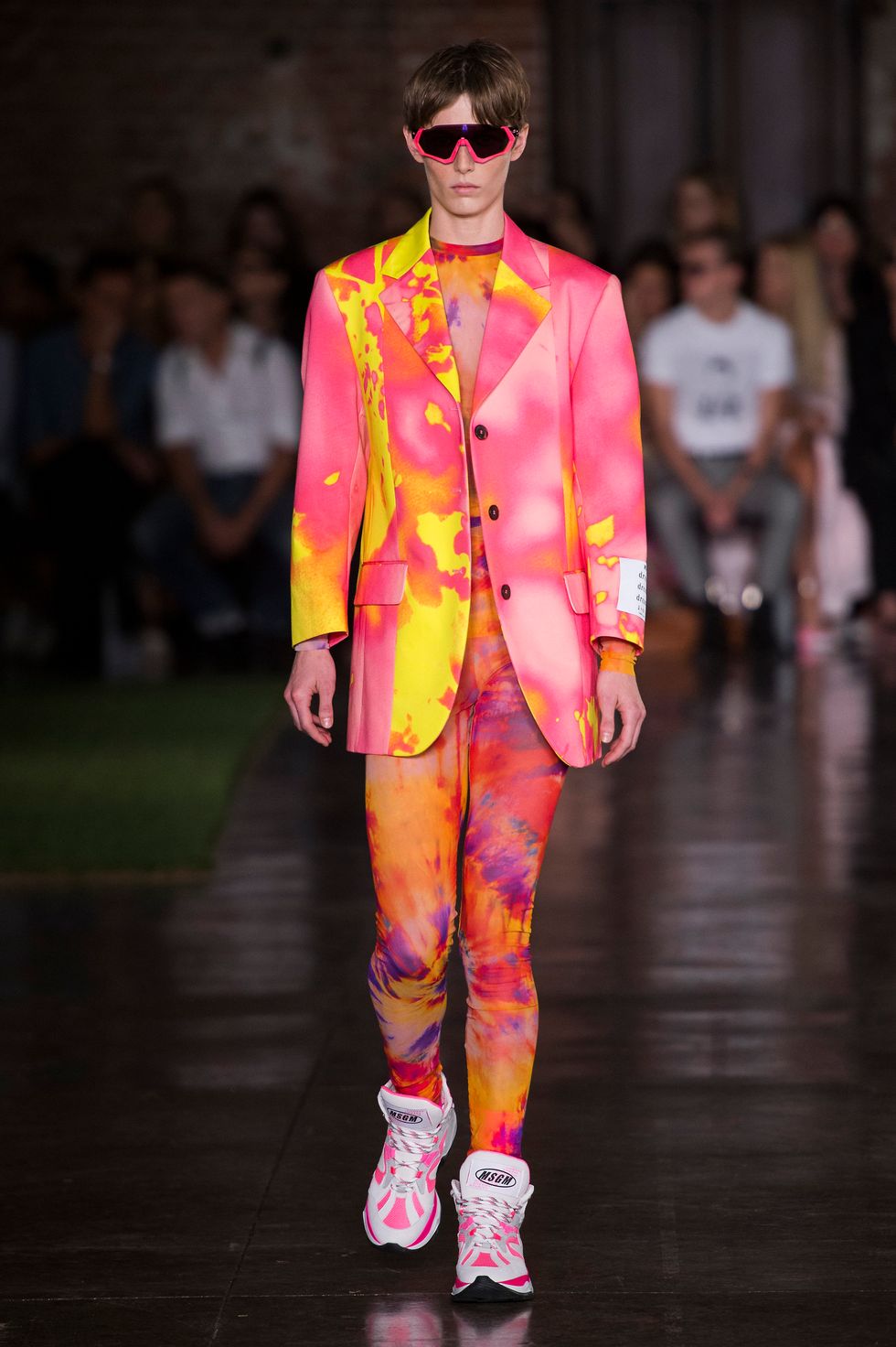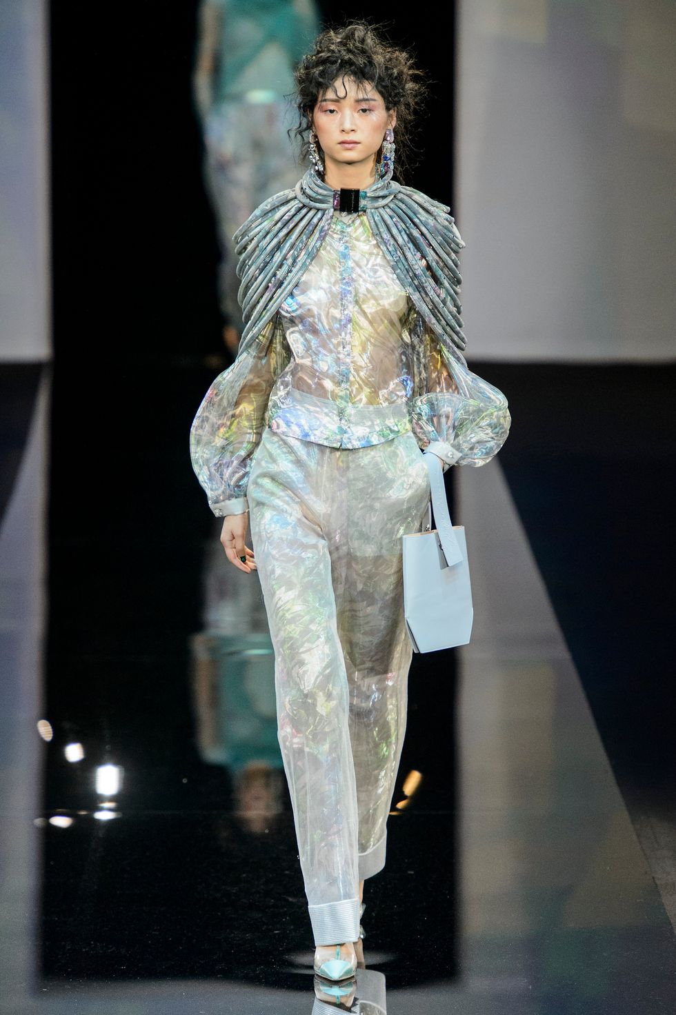 Eccentricity and sexiness went head to head during Milan Fashion Week. Iridescent fabrics, an implosion of prints, and kaleidoscopic tie dye motifs were entirely transfixing, while the little black dress and its fishnet counterpart preserved quintessential Milanese sensuality. Bridal veils (as seen in London) along with bike shorts and a healthy dose of ostrich feathers (as spotted in New York) have cropped up again, firming up the overall direction for spring 2019. See 10 of our favorite trends from MFW, below.