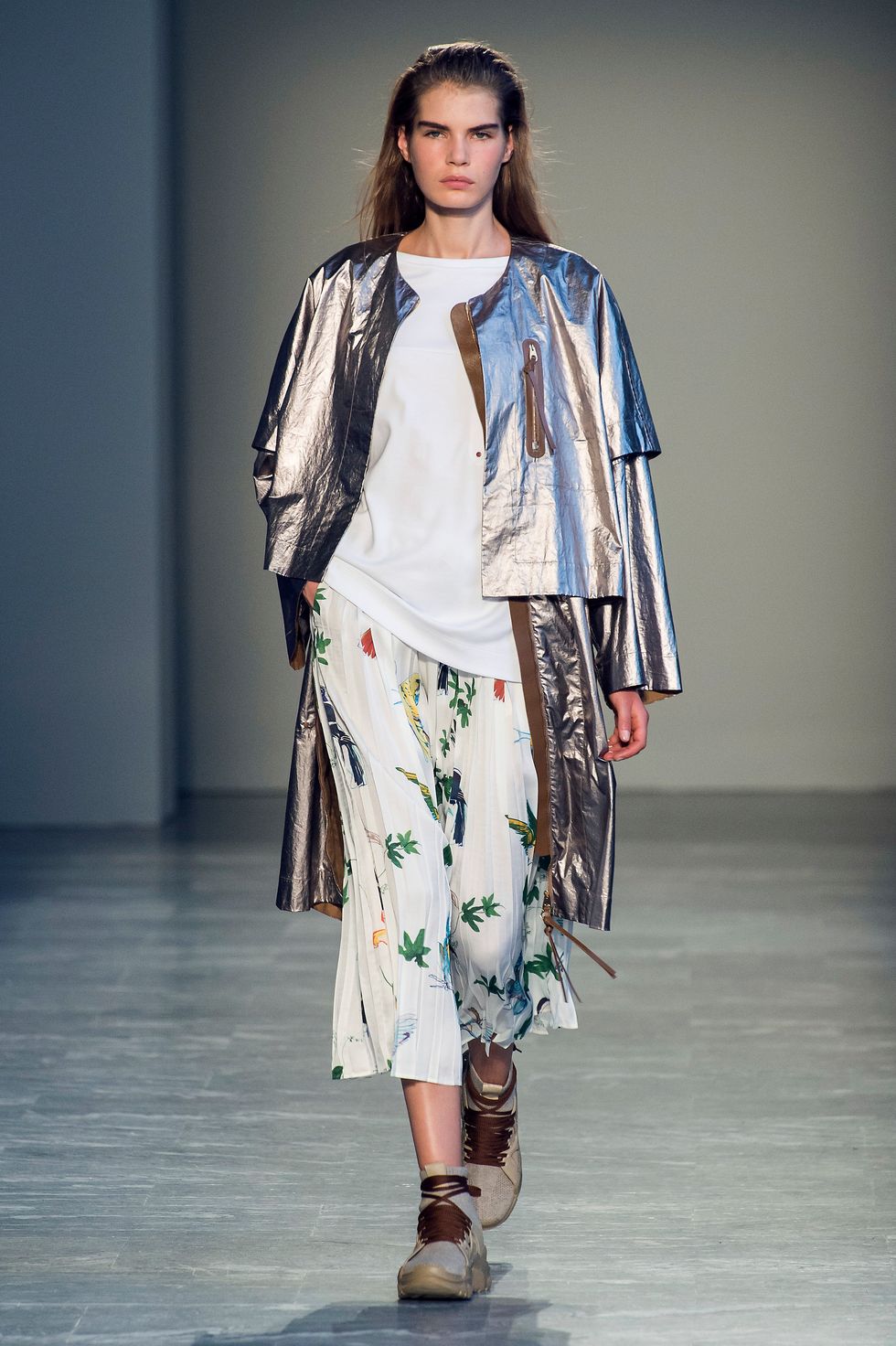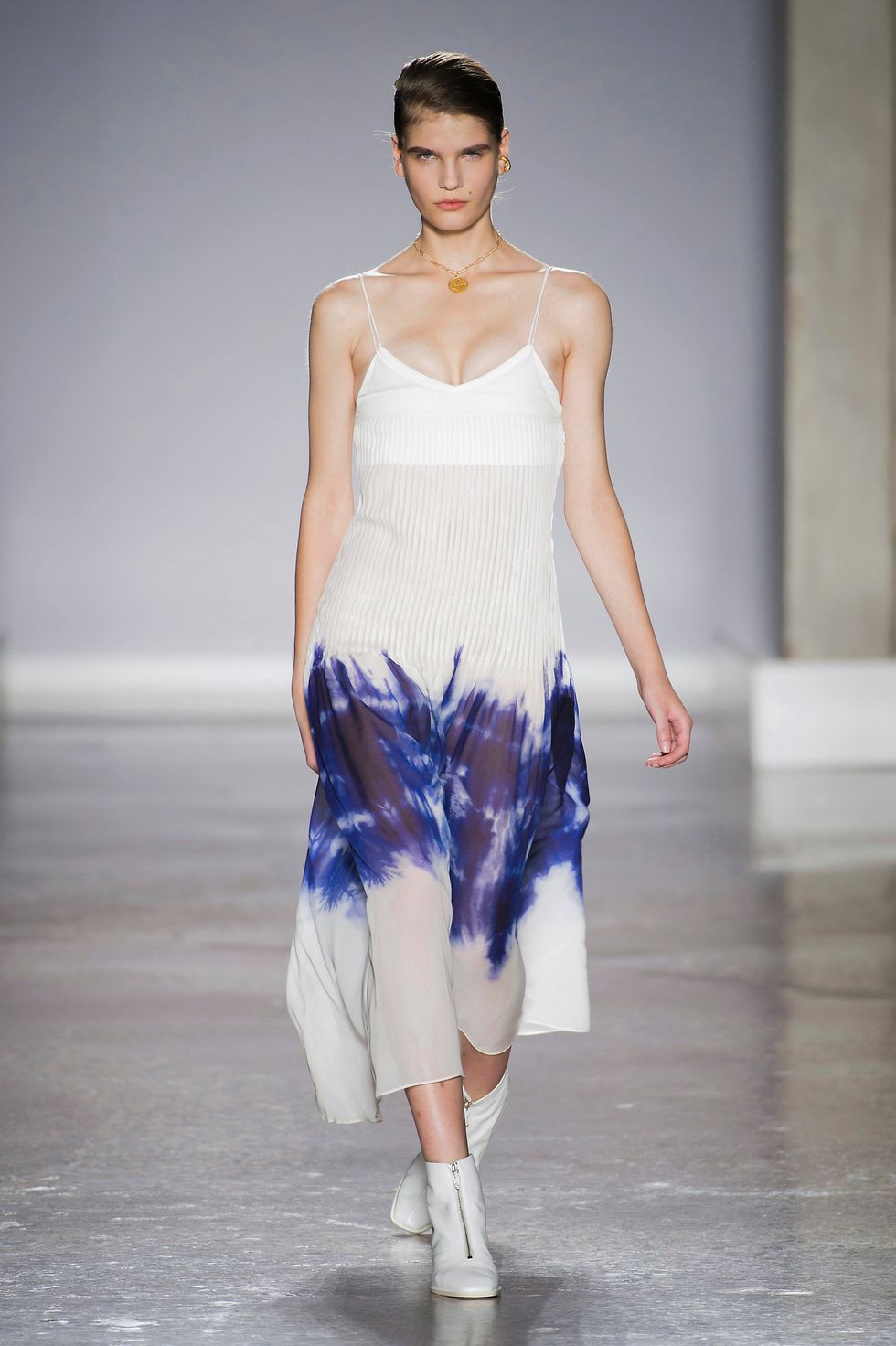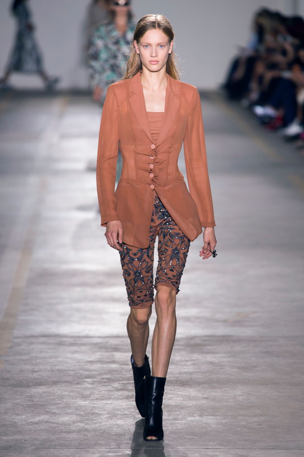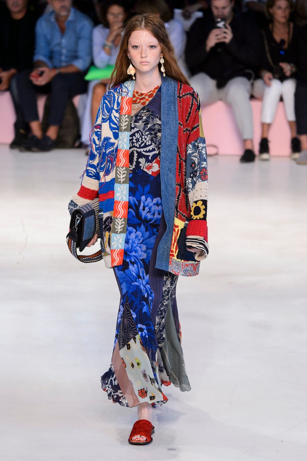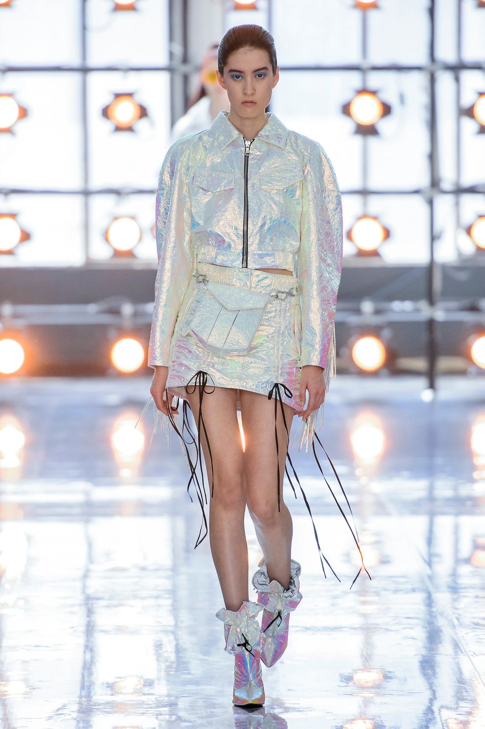 Eccentricity and sexiness went head to head during Milan Fashion Week. Iridescent fabrics, an implosion of prints, and kaleidoscopic tie dye motifs were entirely transfixing, while the little black dress and its fishnet counterpart preserved quintessential Milanese sensuality. Bridal veils (as seen in London) along with bike shorts and a healthy dose of ostrich feathers (as spotted in New York) have cropped up again, firming up the overall direction for spring 2019. See 10 of our favorite trends from MFW, below.