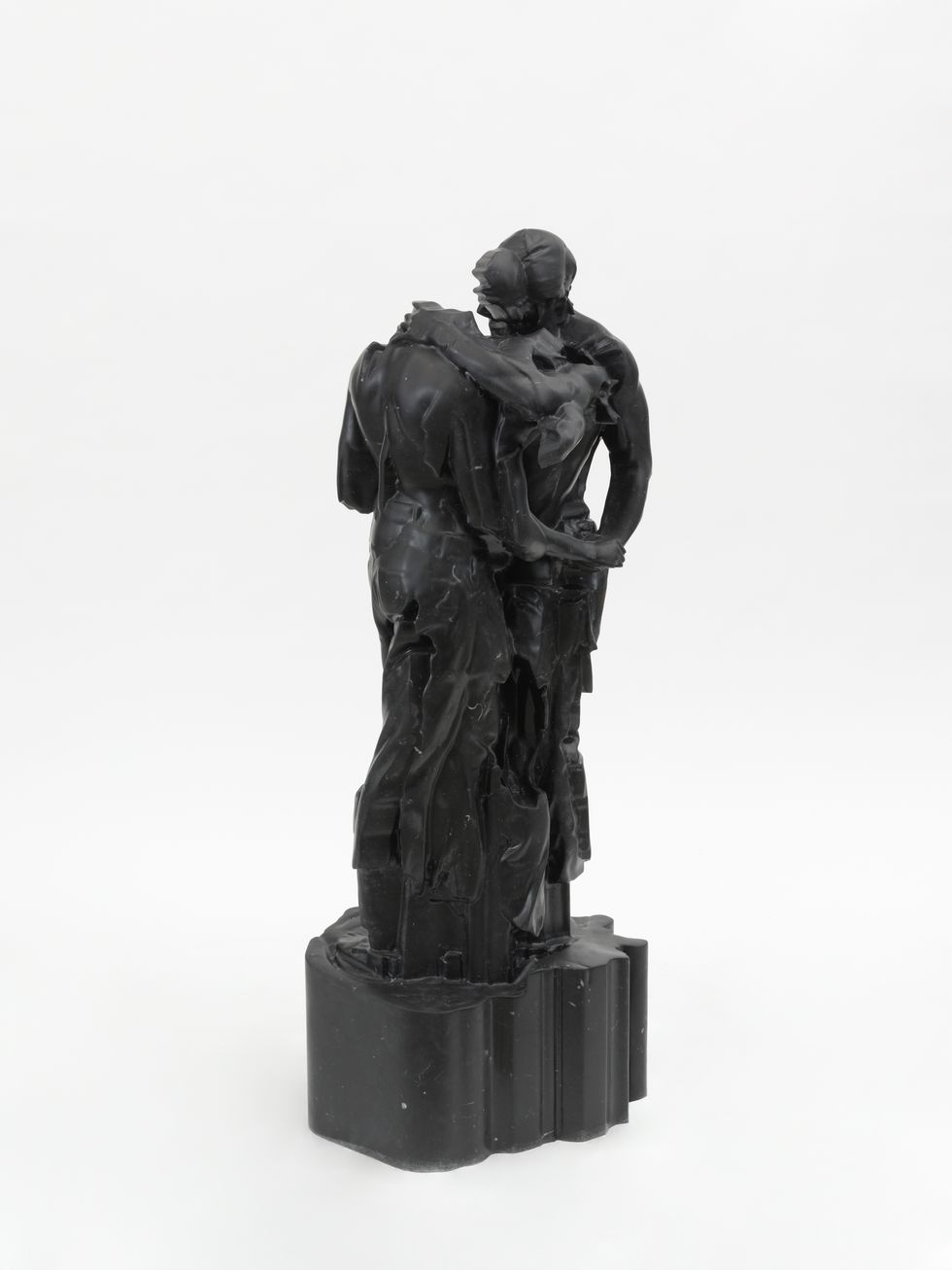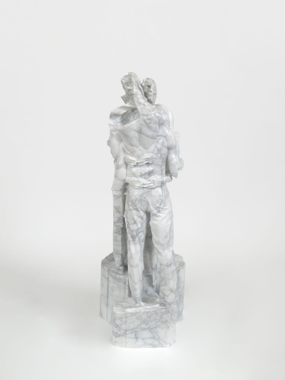 The title “Desire Path” references the shortcuts people create through repeated movement, cutting across predefined routes to follow their instincts. For Greenberg, that intuitive process is key to his work, as the marble sculptures at the centerpiece of this exhibition were derived from 3D scans captured during his 2023 performance, “Fountain II.” These figures, intentionally glitched during the scanning process, are meticulously hand-finished by Greenberg after a year and a half of working with Monumental Labs. The result is an intimate dialogue between the ancient and the digital, the eternal and the ephemeral.