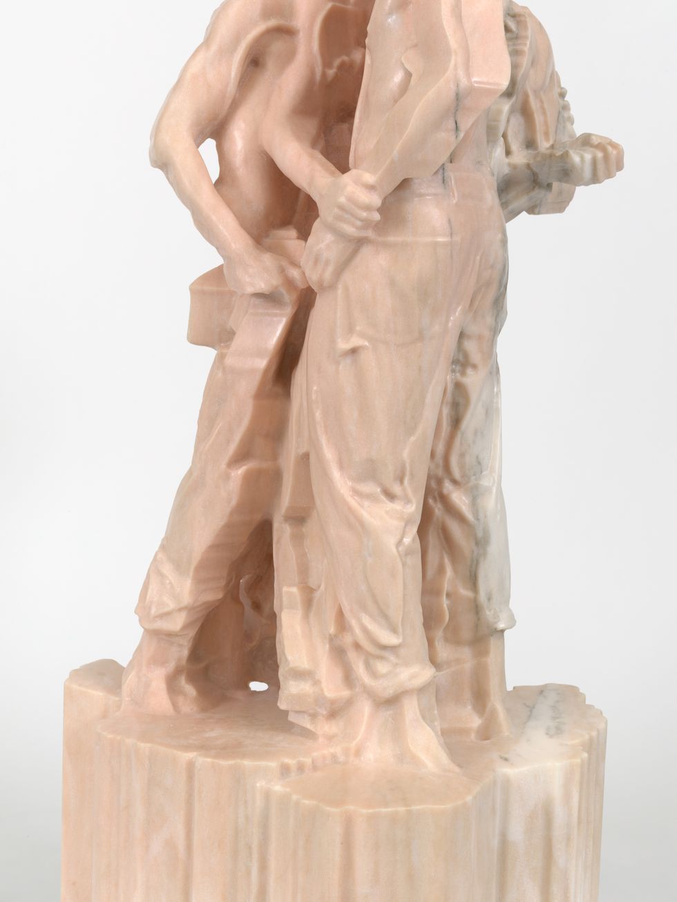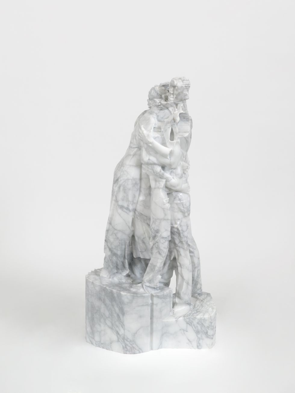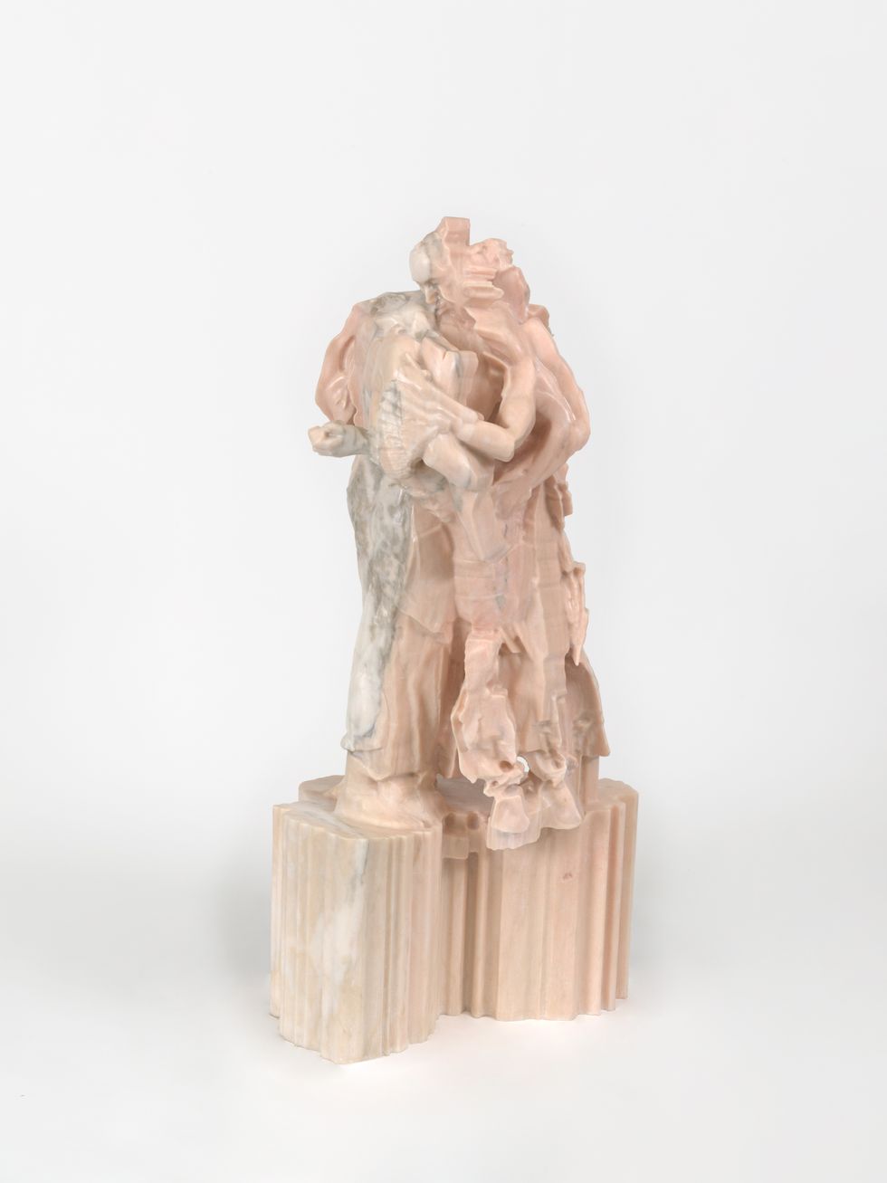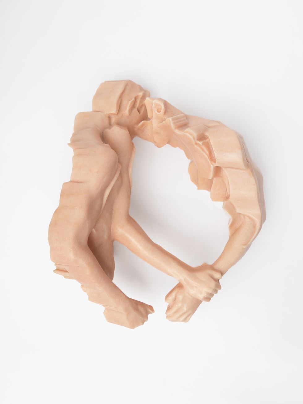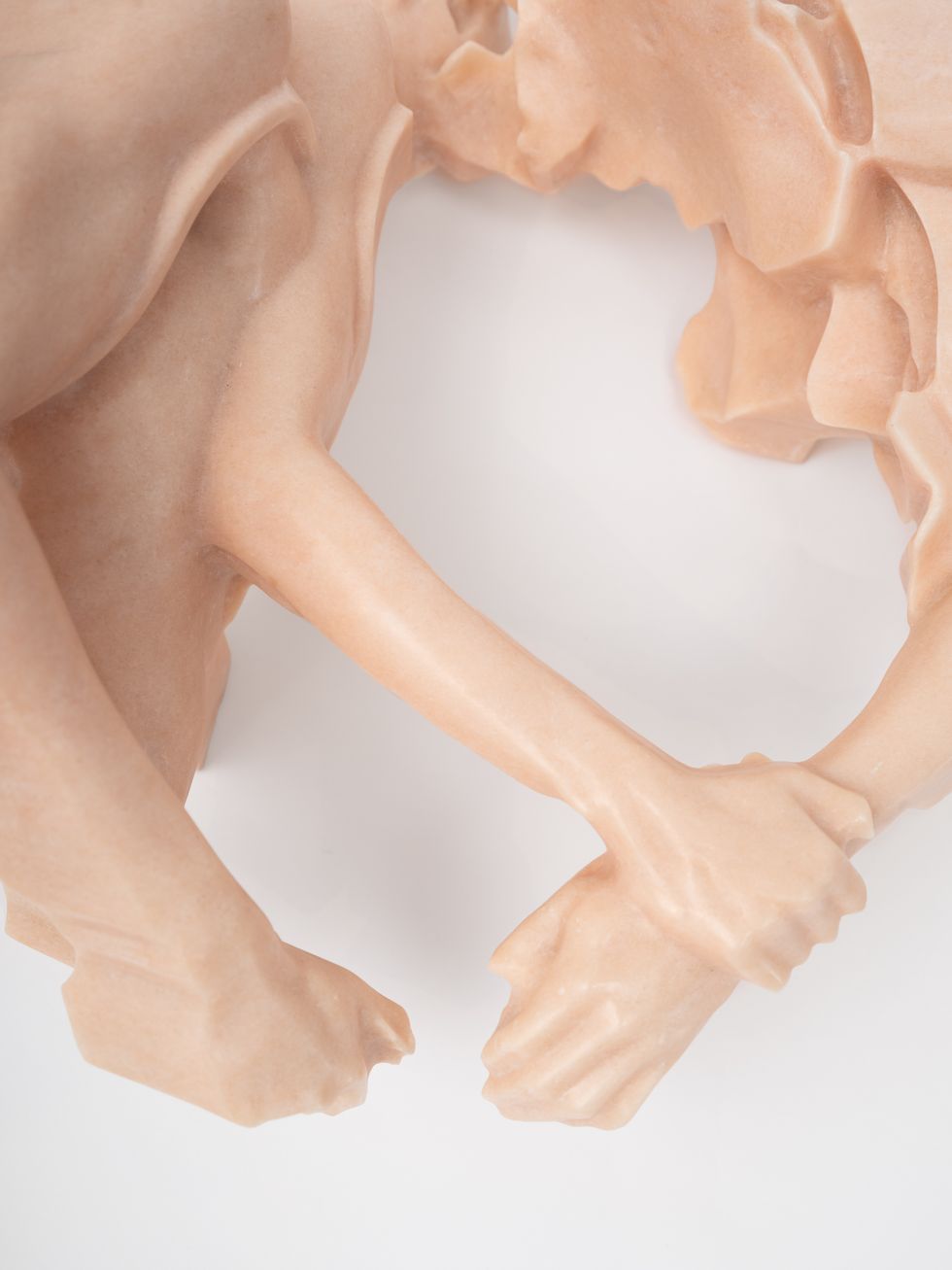 We started with a digital mesh of the sculpture straight from the 3D scans as I do them. It’s a multi-access gigantic robot arm. But afterwards, it was about the hand finishing aspect, getting to know different stones and how they react. They’re all a bit temperamental. Each color had its own particularity. It’s a very eye sensory kind of experience. It’s very sensual. You’re sort of focusing on these microscopic details of the bodies of the subjects. I’ll spend two afternoons on an elbow. There’s something very romantic about it, actually.