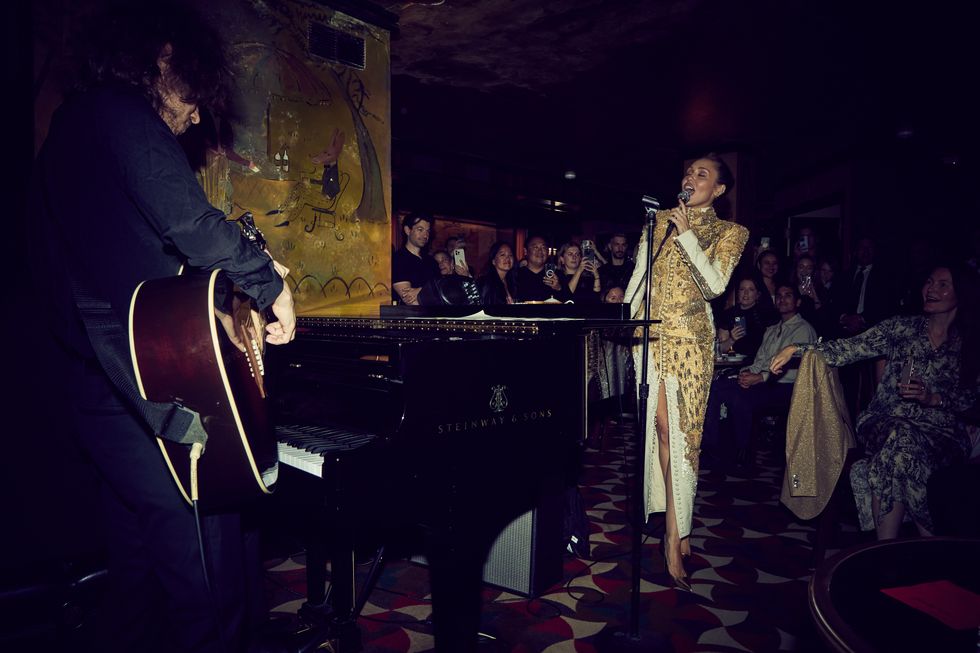Last night, that ethos came to life at Bemelmans Bar inside New York City’s iconic Carlyle Hotel. The PAPER cover alum surprised an intimate crowd with a pop-up performance that felt lifted from a dream. Draped in a custom look from Thom Browne’s debut couture collection for Fall 2024, she delivered a trio of tracks: her Grammy-winning anthem “Flowers,” alongside two new standouts — “More to Lose” and “Easy Lover” — from her ninth studio album, Something Beautiful.