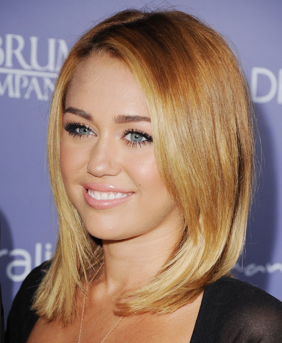 A shift took place at the Daily Front Row Fashion Awards over the weekend, where Miley Cyrus's stylist Bradley Kenneth won Music Stylist of the Year. On the red carpet, Cyrus debuted a brunette and blonde-streaked hairdo, which most will note is her first time out and about with the hair color since her Bangerz album cycle broke the internet and then broke it again — with a wrecking ball, of course.