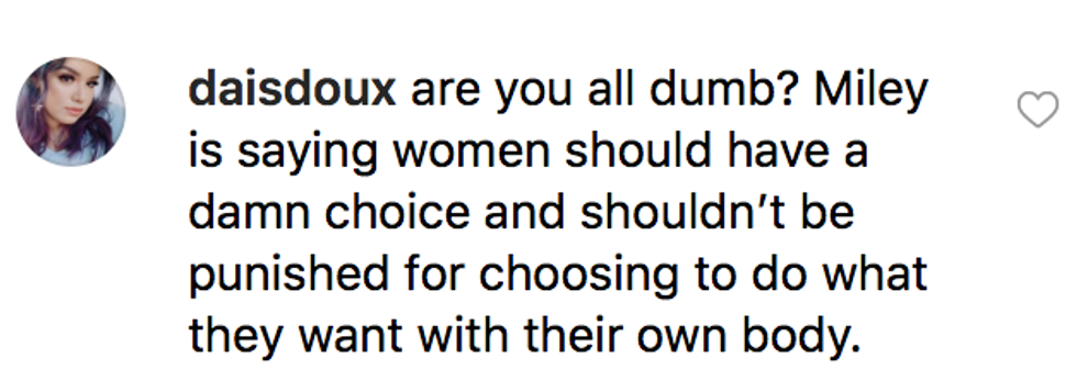 However, as some of her defenders reiterated, Cyrus was likely addressing the fact that women shouldn't be punished or slut-shamed for "choosing to do what they want with their own body" — a message that we can definitely get on board with.