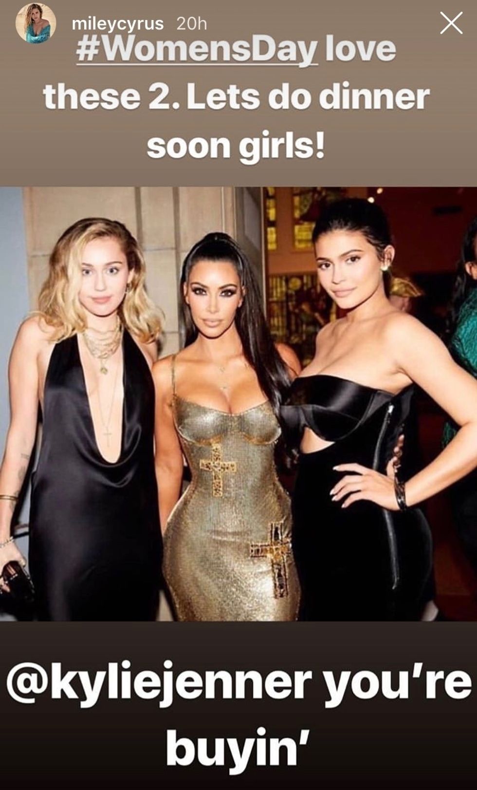 - Her and Kim Kardashian, Kylie Jenner ("#WomensDay love these 2. Lets do dinner soon girls! @kyliejenner you're buyin'")