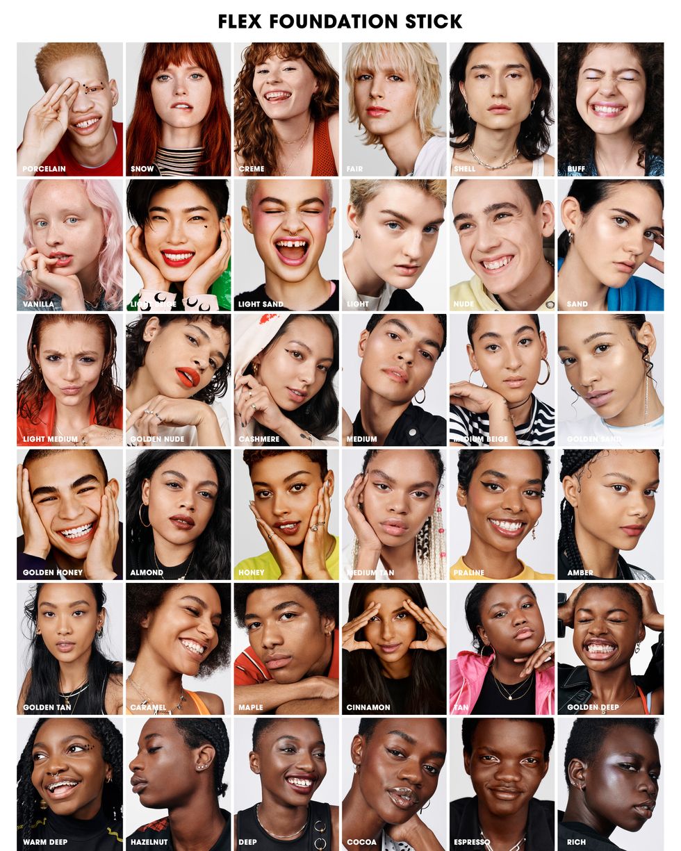 The foundation comes in 36 shades — the largest for the brand and one of the largest in the market. To celebrate the diversity of the new Flex range is the accompanying campaign featuring 36 models picked from a "250 person open casting" held earlier this year at Milk Studios.