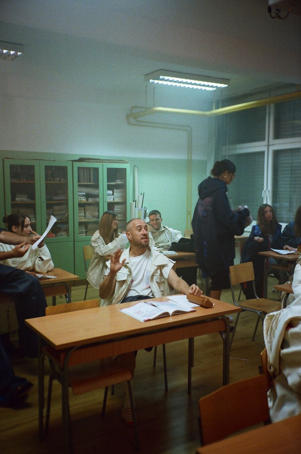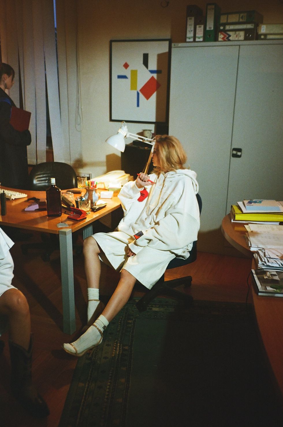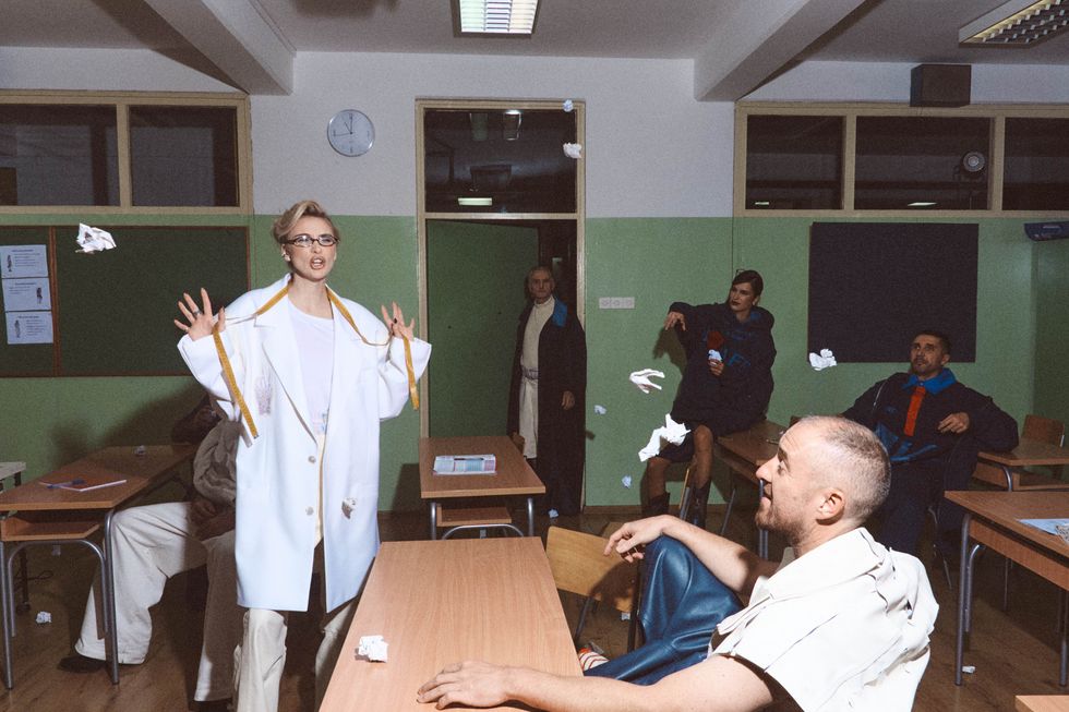 The duo, one residing in LA and the other in Croatia, stepped into contact using the newfound alien comms and began forming teams to research the mysterious clothes they stumbled upon. This is the backstory in short, and the campaign we shot in Croatia at our hometown of Samobor further follows The Clique while they attend a special night school, where they would learn how to use Milli Point Two clothing for good. It’s a whimsy stereotypical '90s high school drama mixed with environments and sentiments from '90s Balkan, with its architecture and props. It’s a weird, wild ride that propels the viewer into a woozy world, where the only visual constants are the garments themselves.