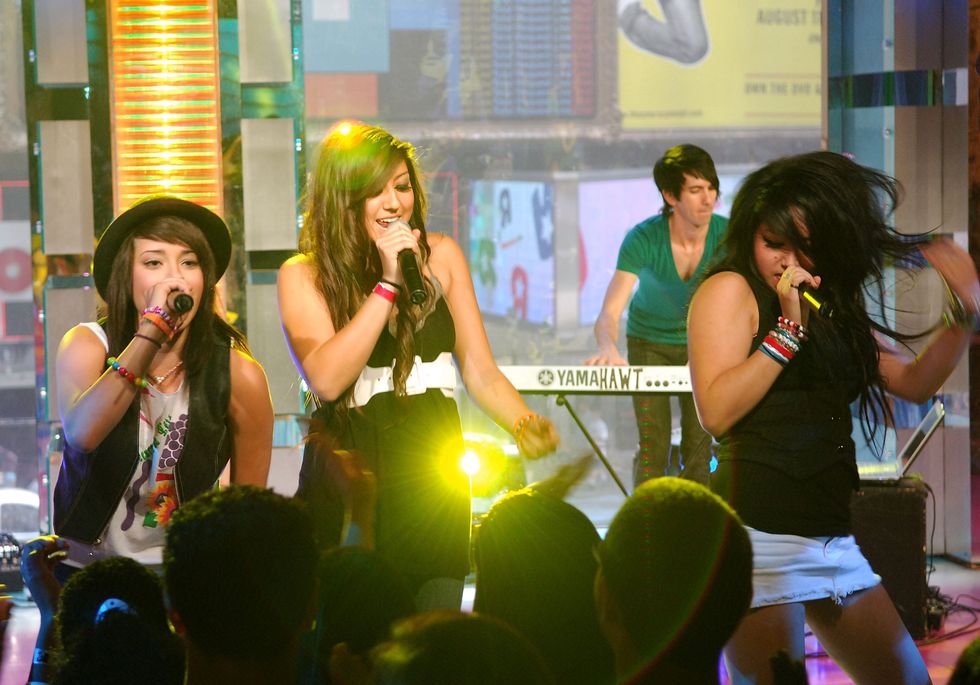 Around this time, the band was invited to perform live on TRL's "On the Radar" — easily their biggest opportunity to date, and a chance to get their music legitimized outside of Myspace. "We randomly got an email [from TRL], and started freaking out," Melissa says. "They made us fly ourselves out, and my mom went into her savings to send all three of us. It was during our first week of tour; I remember we had to play two shows in LA, and then go to NYC three days later. We flew overnight, got to New York at 6 AM, and had to go straight to filming. I'd lost my voice."