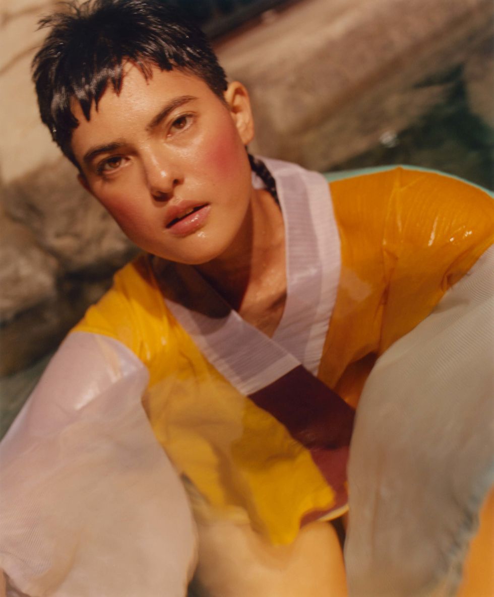 It's a photo of me and my parents because I wanted there to be a sense of time. I wanted there to be a sense of where I came from and where I'm going. I wanted there to be a look in my eyes that tells the viewer that I know something, kind of like a premonition. We also wanted it to have a sense of community, because the songs are very personal to me, but they also felt universal in a certain way, and I wanted that to be communicated. It's about you, it's about me, it's about family, it's about our ancestors, it's about our future children, you know, this sense of a timeline. So we were just like, "What if it was a family portrait?" And we just rolled with it. It was really fun, because my parents got a call sheet. I sent them a call sheet, and we pulled clothes, so everything they're wearing is their own wardrobe. I went to their house and pulled clothes that we thought would work. The stylist was also half Japanese, so we had a lot of fun digging into what that means, to be half Japanese, and pulling in different parts of that culture. I think it turned out amazingly well. It was one of those situations where it could've been awful. The photographer, shot all on film, so we didn't have any idea. It was like, "Do we have something? Do we not? I have no idea." It was kind of a dream team in terms of the artists working on that photo. In hindsight, I shouldn't have been worried, but I was kind of worried, because it's a little bit of a weird concept. I think on this album I was kind of obsessed with the idea of family and home life, and springing that into the magical world of pop music, but about home.