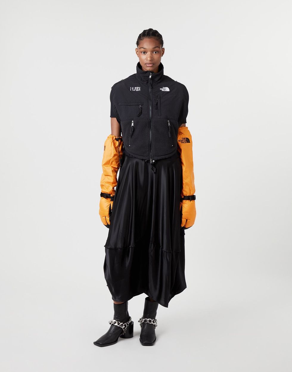 These are not your standard North Face finance bro commuter jackets. At its runway show in February, luxury brand MM6 Maison Margiela took one of most ubiquitous outerwear staples and gave them a conceptual, avant-garde spin that made for one of the most interesting collabs of London Fashion Week.