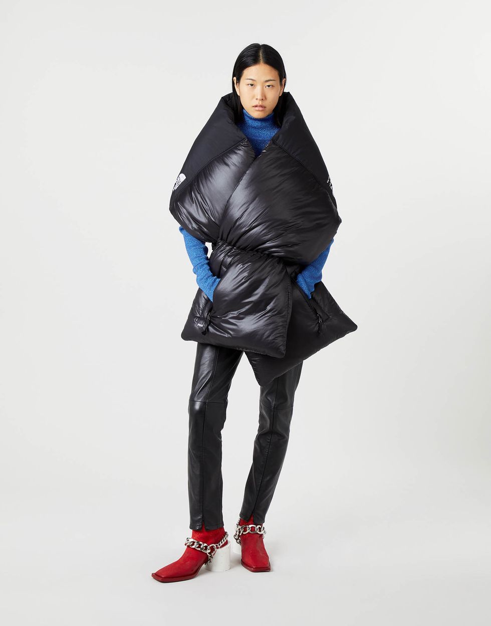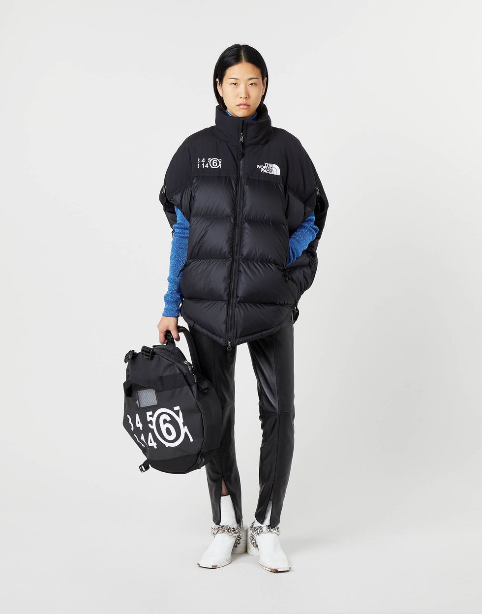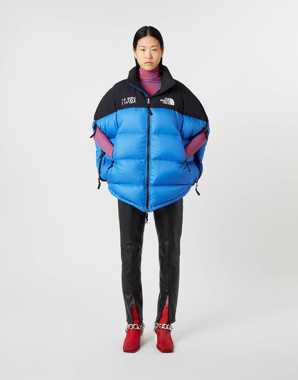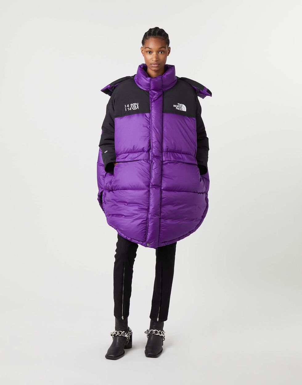 The structural shapes, circular patterns and deconstructed details of the capsule are all MM6 signatures, while the interlocking parts and insulating properties are very much The North Face. Standouts include a hooded Himalayan Coat, the cape-style Mountain Kaban and the Nuptse puffer jacket.