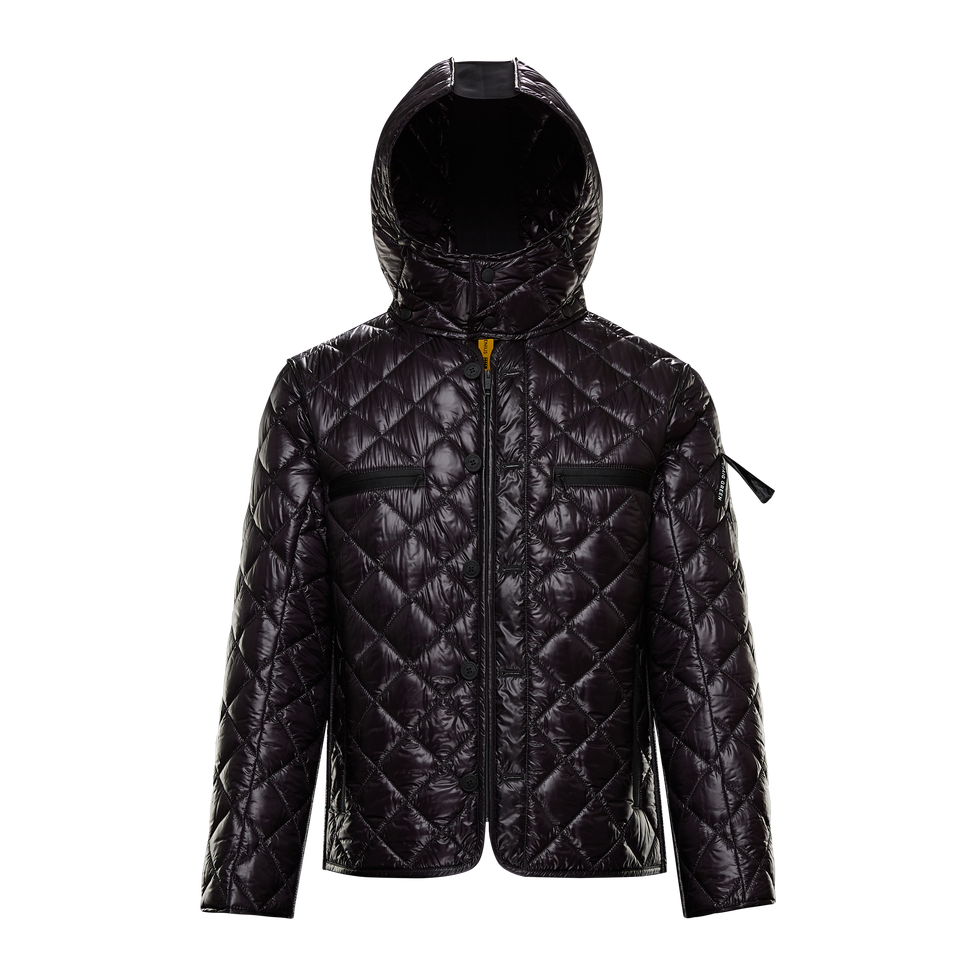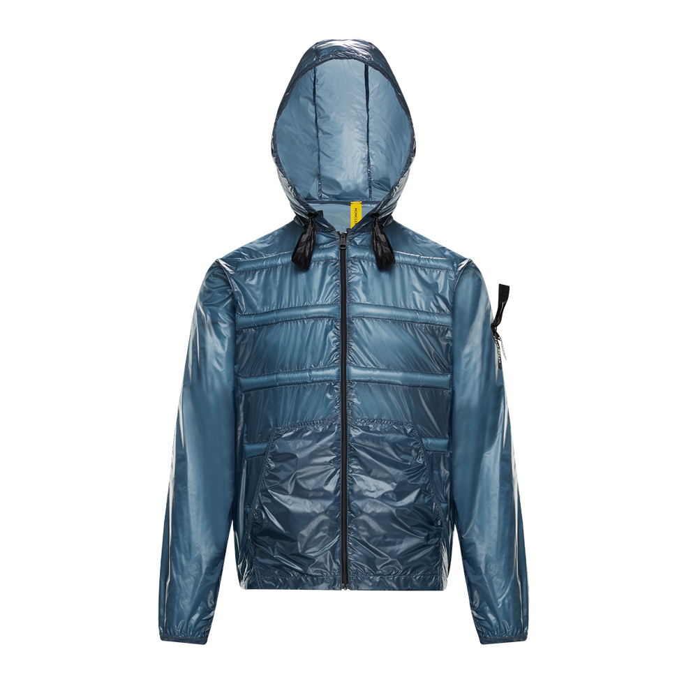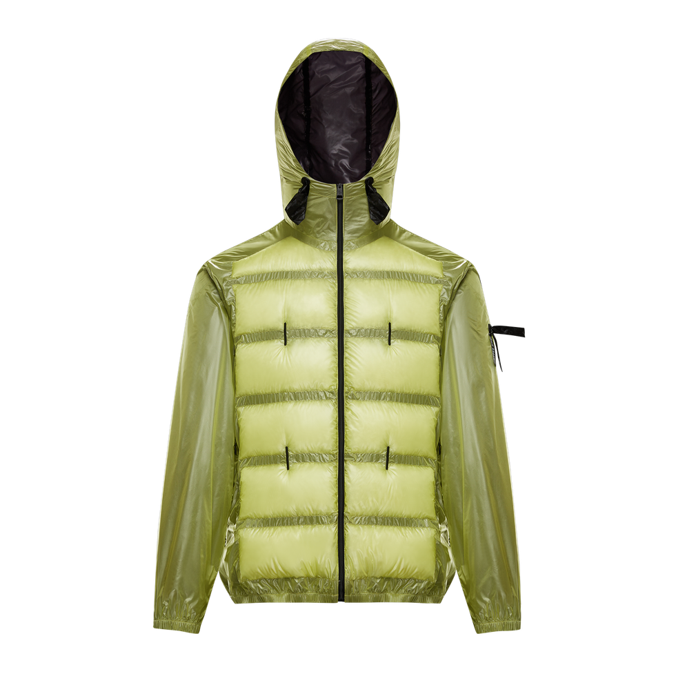 The result is a series of colorful, structured pieces resembling transparent life rafts that give off the appearance of laying flat, a nod to the designer's experiment with 2D effects. (The collection was presented earlier this year during Milan Fashion Week.) For the commercial range, Green utilized micro rip-stop nylon to make technical puffer jackets, vests and hooded cardigans.