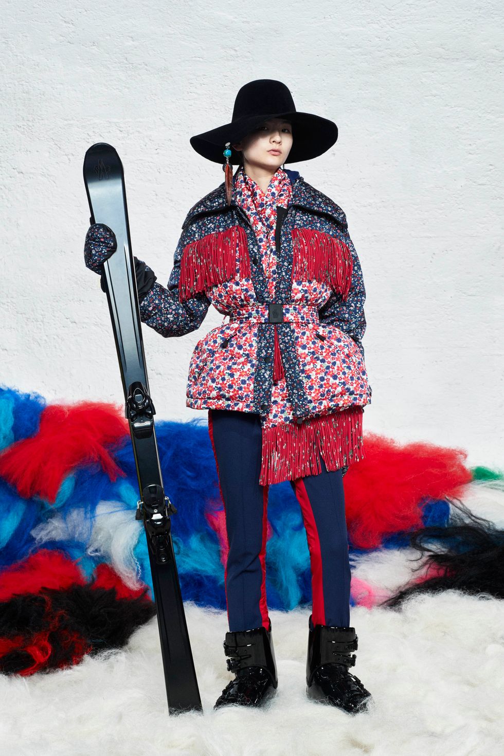 This season, Grenoble has a subtle yet decidedly hippie flair, with Marino inspired by old festivals and the 50th anniversary of Woodstock. To wit, tie-dyed prints, psychedelic patterns, and fringe accents decorate everything from puffer jackets to snow boots to ski pants. (Cowboy hats also feature aplenty.)