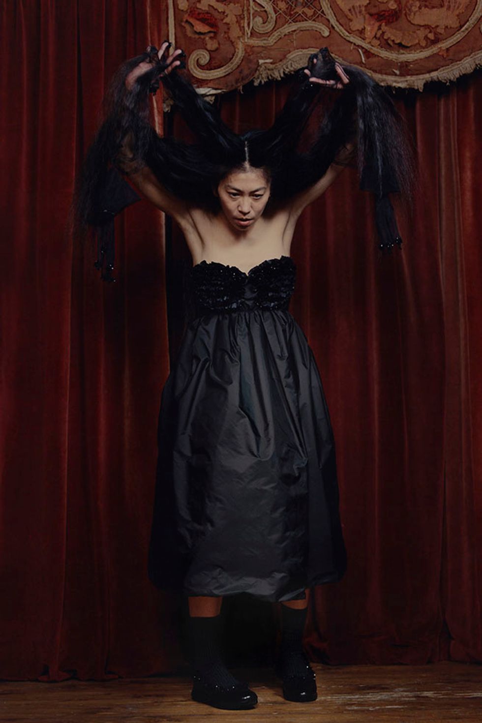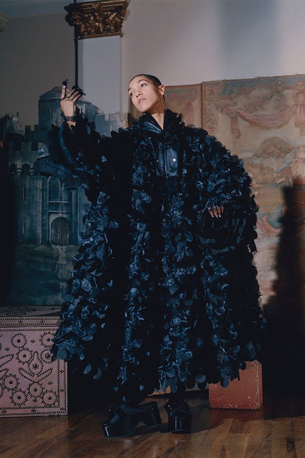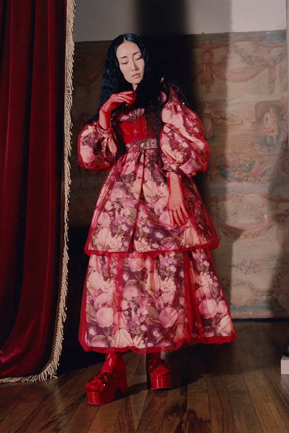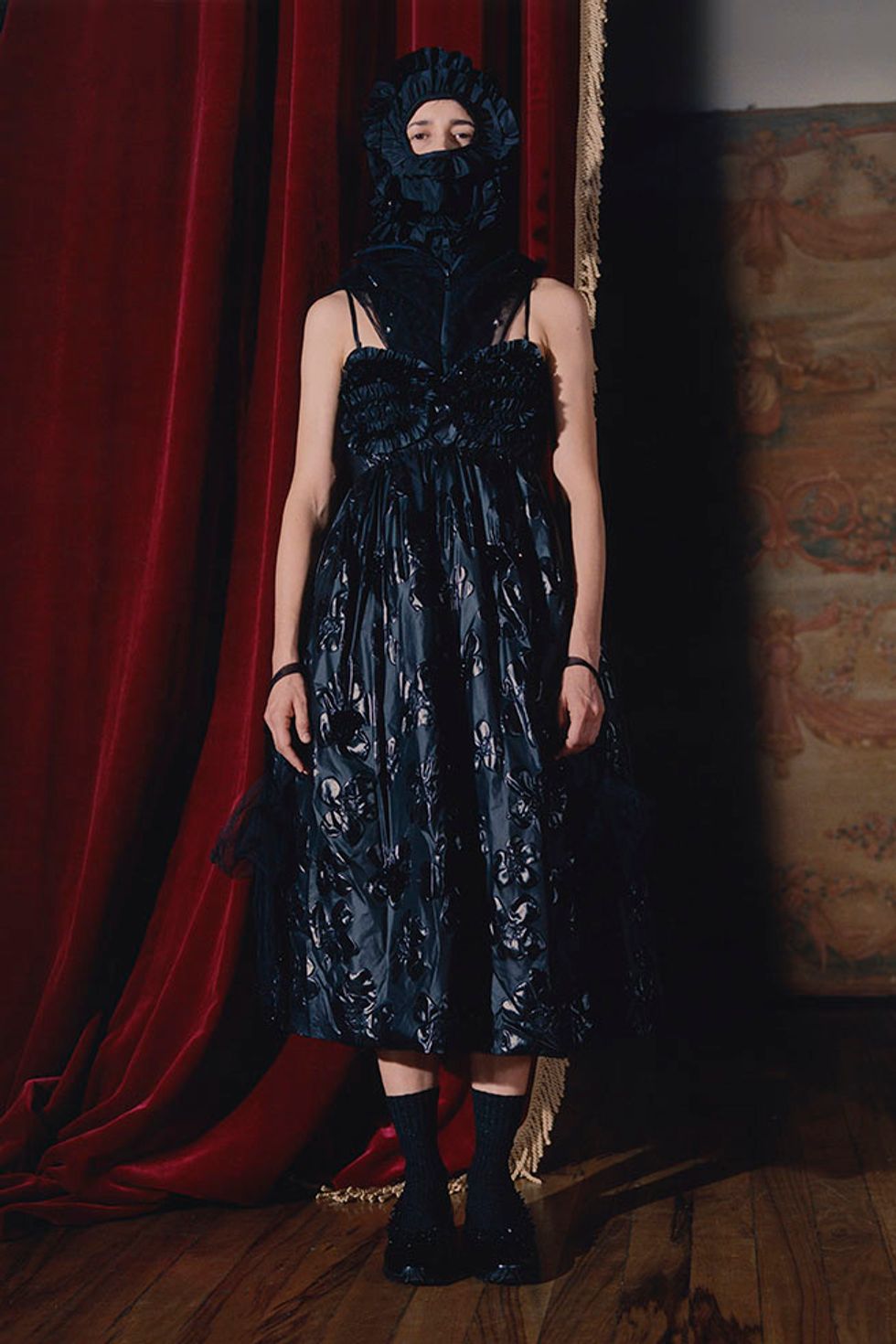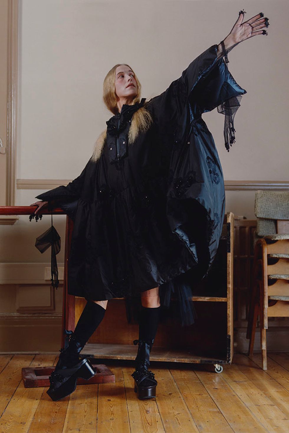 This season, Rocha wanted to give the clothes a lighter feel while incorporating elements of movement and dance as seen on things like frilly outerwear and tulle fabrics. But this wouldn't be a Simone Rocha collection without some dark, spooky details like all-black textiles and jarring silhouettes.