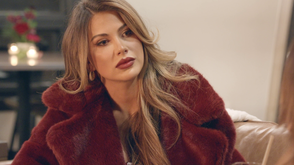 I almost passed on Mikayla’s second confessional look, thinking it was the exact same dress. In many ways it is the exact same dress, if not just in cut and color, but in spirit too. There’s a safety Mikayla feels in it, a reliance on an expression of femininity found in its energetic aura. It makes sense she’d lean on what she feels most comfortable in, considering a bulk of her plot this season detailed healing from, and finding solace in, her therapy sessions to deal with past trauma.