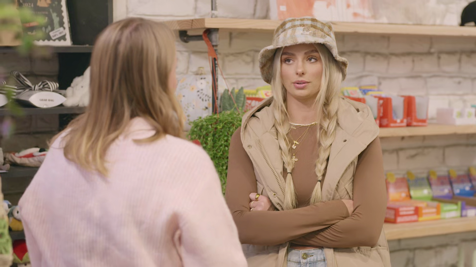 This one scene in particular is the perfect example of how they all play on variations of the same outfit. Taylor has the relaxed denim and keyhole cutout sweater, while Mikayla is in a sensible cardigan and muted skirt. Mayci, on the far end, jazzed up her off-the-shoulder sweater with ripped skinny jeans.
