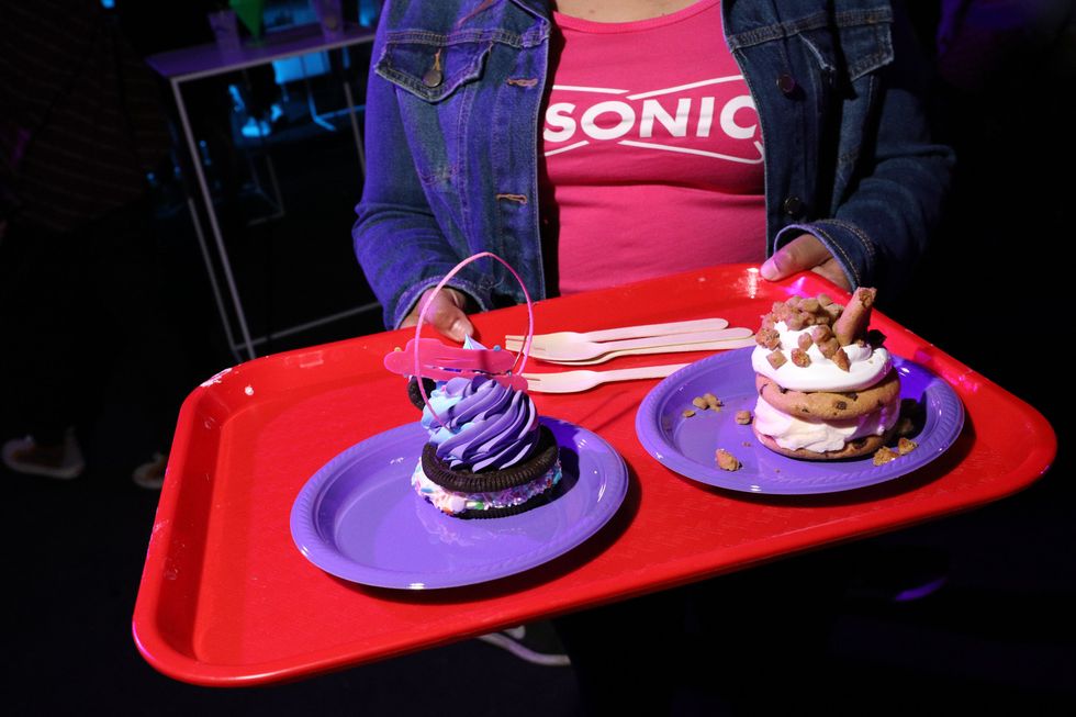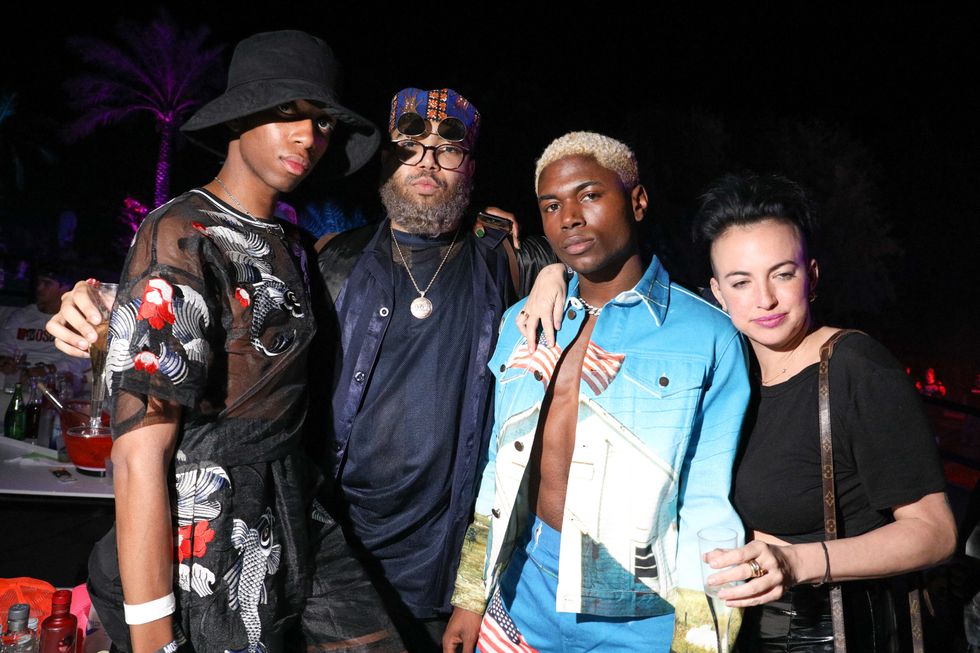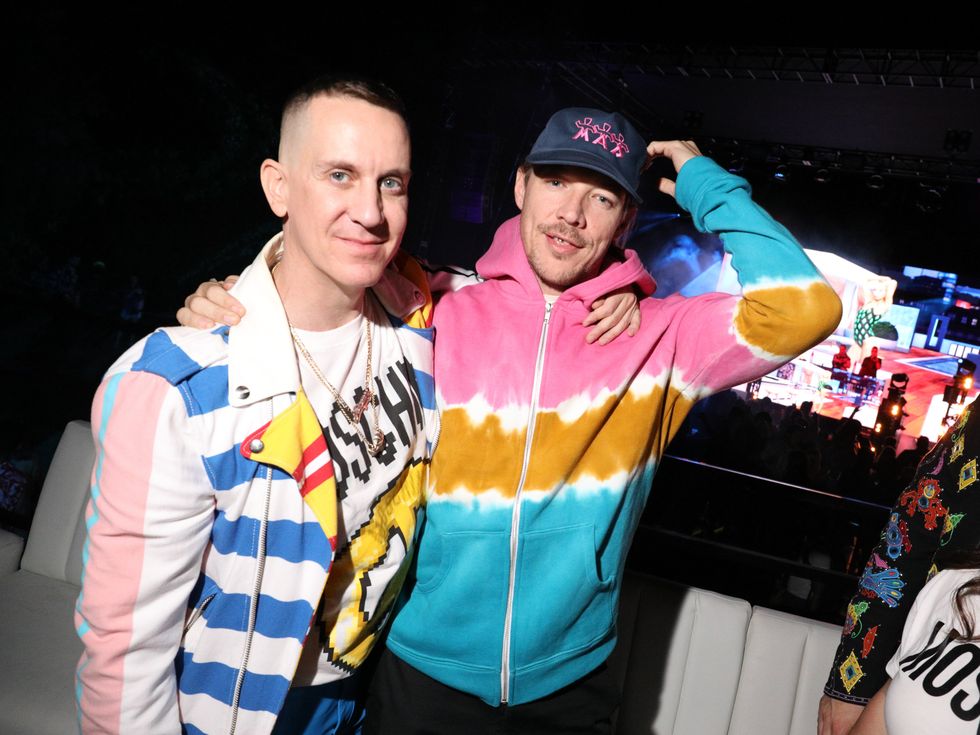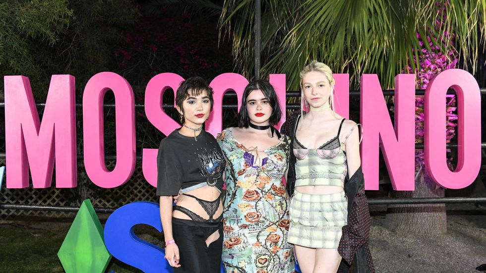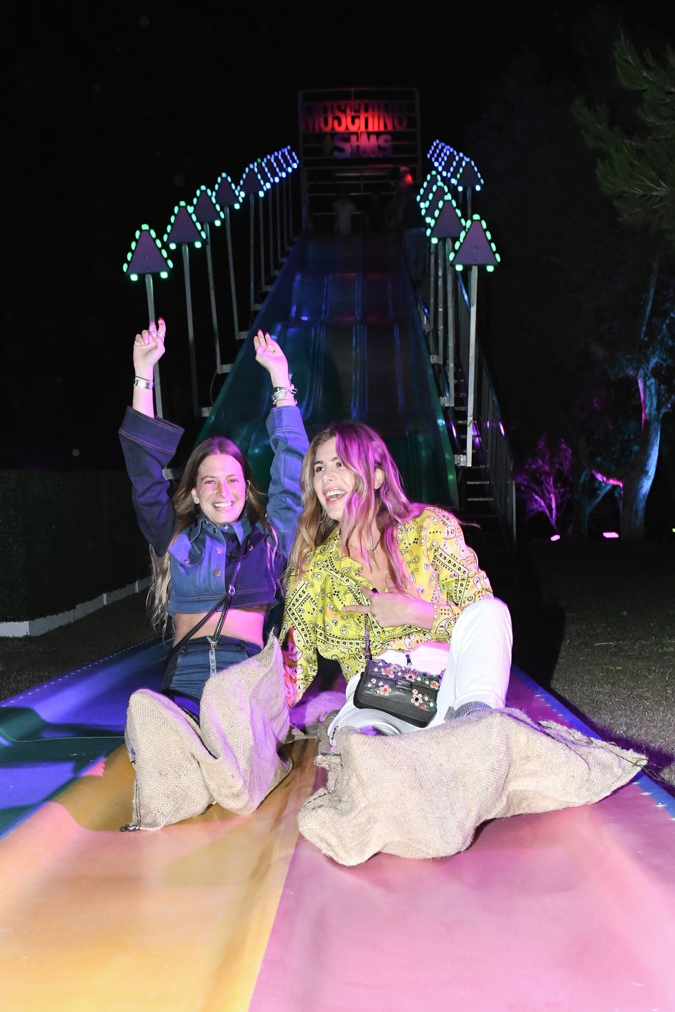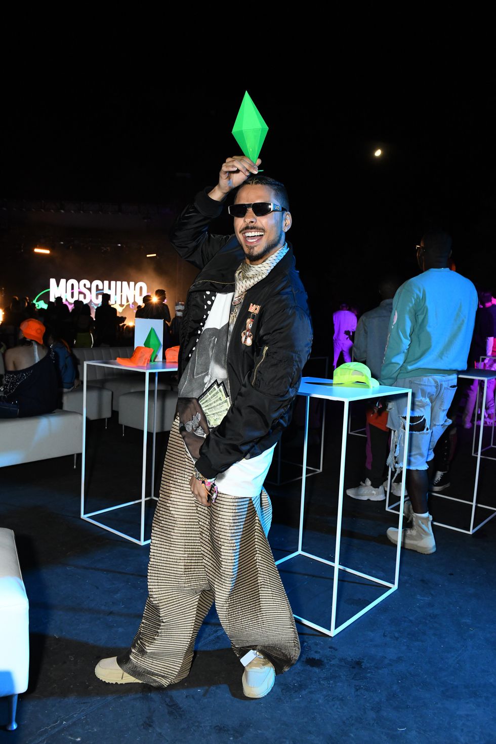 Like a VR mirage in the middle of the Indio, California desert, Moschino created a The Sims-themed paradise on Coachella weekend in honor of their latest capsule collection in collaboration with the popular virtual reality game. The party had everything from a giant slide and rollerskating rink, to SONIC burgers and ice cream sandwiches. The 3D green diamond icon was, of course, everywhere. And the guest list was, as expected, straight out of The Sims "Get Famous" expansion pack — filled with our famed faves.