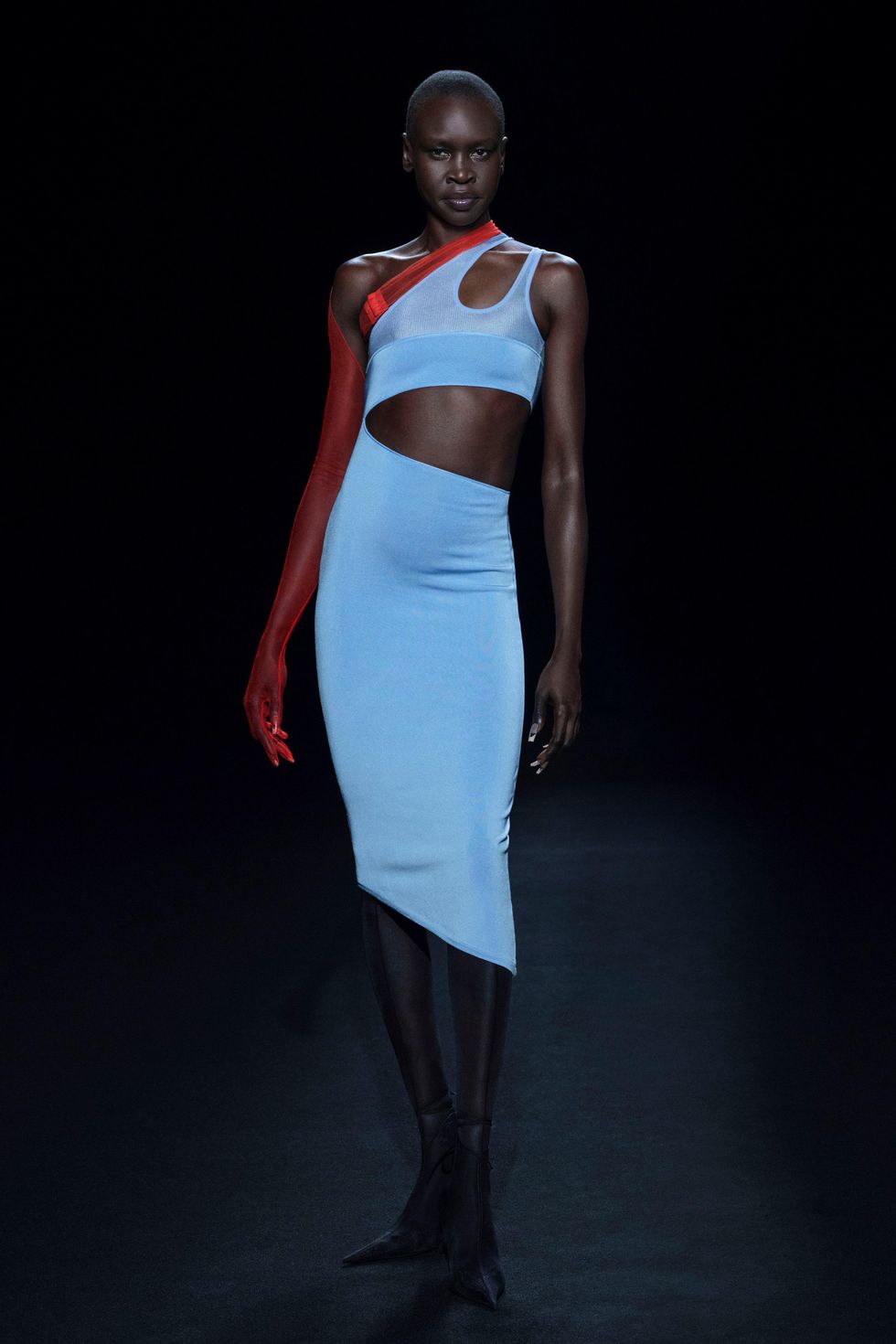 Last October, the brand showed Part 1 of the Spring 2021 collection — a part-CGI film with Bella Hadid as a flying pegasus on the Paris landscapes — which acted as a prelude to the collection you're seeing here. From here on out, Mugler is showing on a see-now-buy-now format, with this entire Spring collection hitting stores shortly.