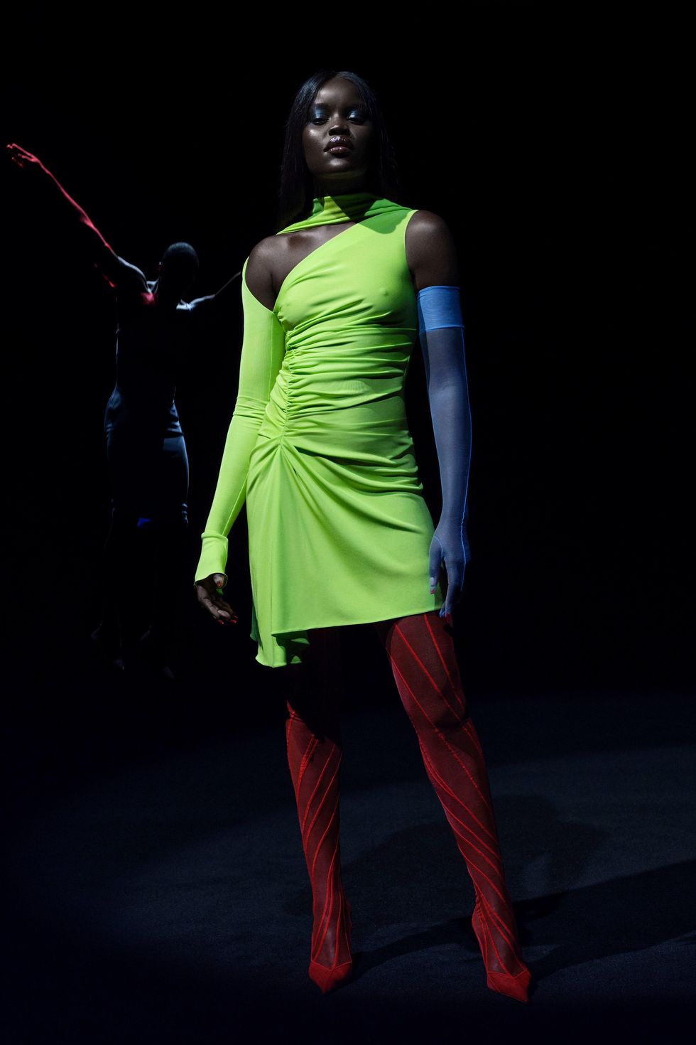 Perhaps not coincidentally, Cadwallader unveiled his latest collection today on International Trans Day of Visibility, and had trans models like Pose's Dominique Jackson and Euphoria's Hunter Schafer walk the show. (Trans models Raya Martigny and Kai Isaiah Jamal walked for the brand last season). The cast also includes names like Bella Hadid, Shygirl, Patia Borja and Alek Wek.