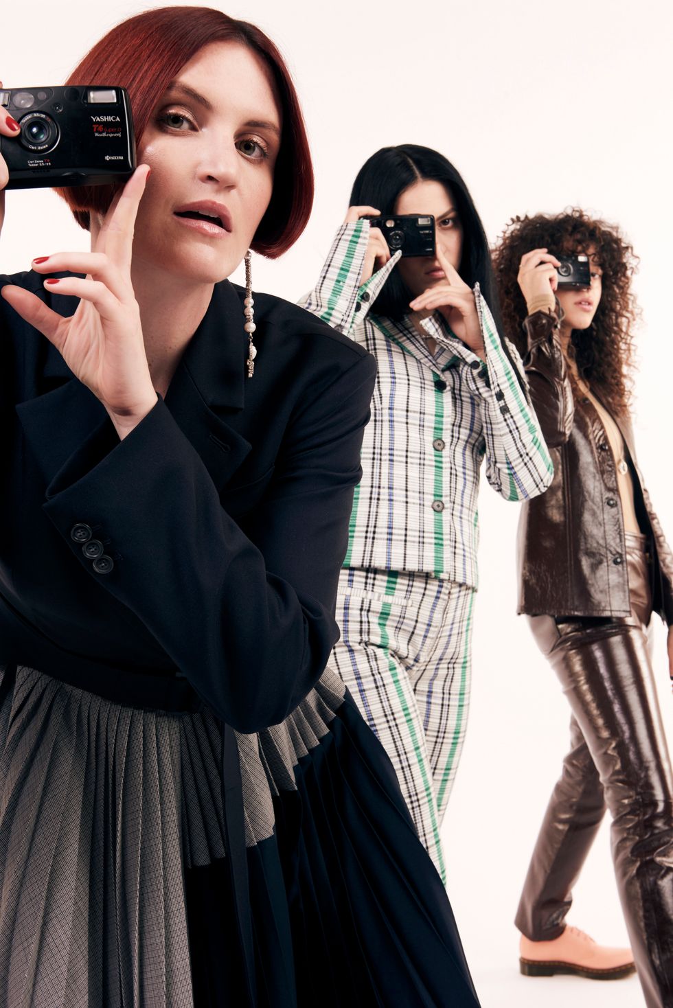 (On Katie) Dress: SportMax, Earrings: Chanel & Alexis Bittar, Rings: Bulgari (On Jo) Suit: Kenzo, Necklace: Bulgari (On Naomi) Jacket & Pants: AMI, Top: Acne, Necklace: David Yurman, Rings: Cartier & Alexis Bittar, Shoes: Dr. Martens