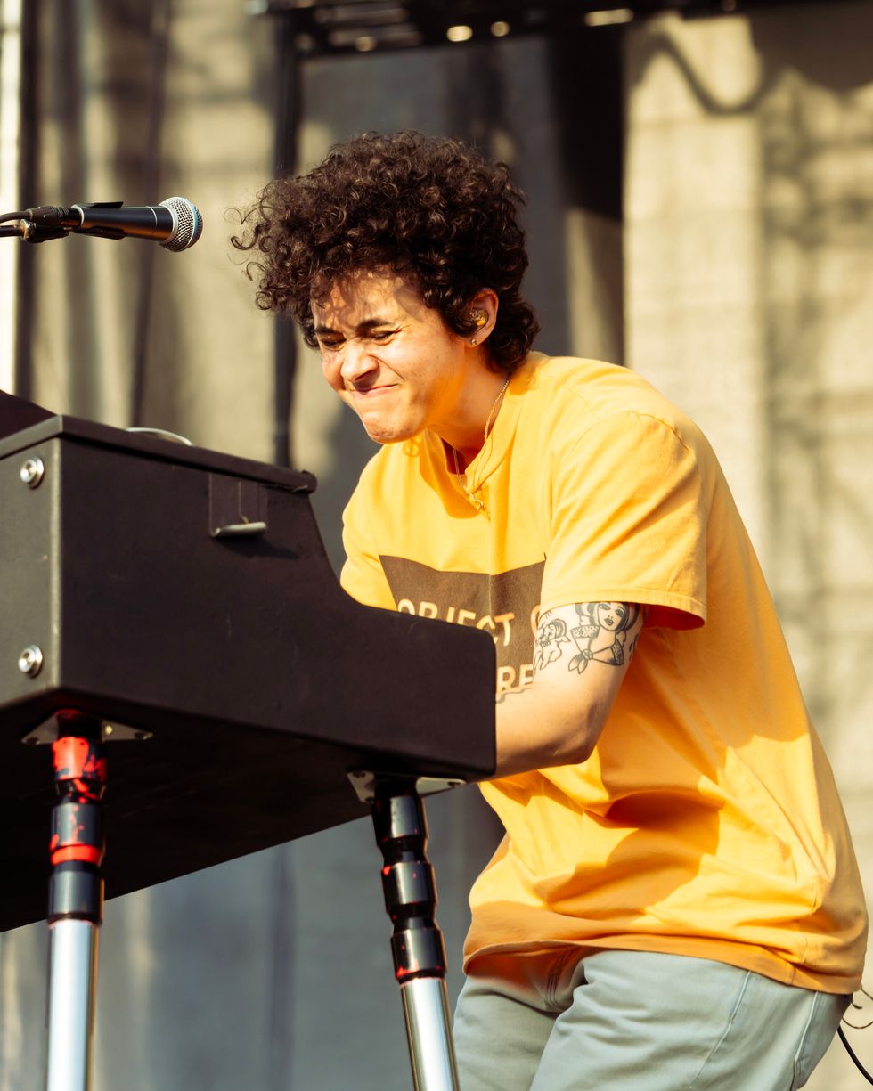 Their fans especially can appreciate the significance of MUNA playing Pitchfork fest. The band received a 7.7 score for their sophomore album, Saves The World, a score artist Shamir noted as being the “essential gay listening’ bat signal” (other members of the 7.7 club include Charli XCX’s how i’m feeling now, Lana Del Rey’s Blue Bannister’s, and Mitski’s Bury Me at Makeout Creek). 7.7 is not nothing, but the band was “sure they’d get Best New Music [with their next record, MUNA],” as Gavin told me. Well, MUNA did get an improved score ... of 7.8. They took it all in stride, though and even got that sacred 7.7 as matching tattoos. But regardless of Pitchfork’s scoring, when it was later time for MUNA to take the stage, they performed for an ocean of people in Union Park, many of whom seemed to be tried and true MUNA fans, a rare feat at a busy music festival where folks are coming for all sorts of acts.