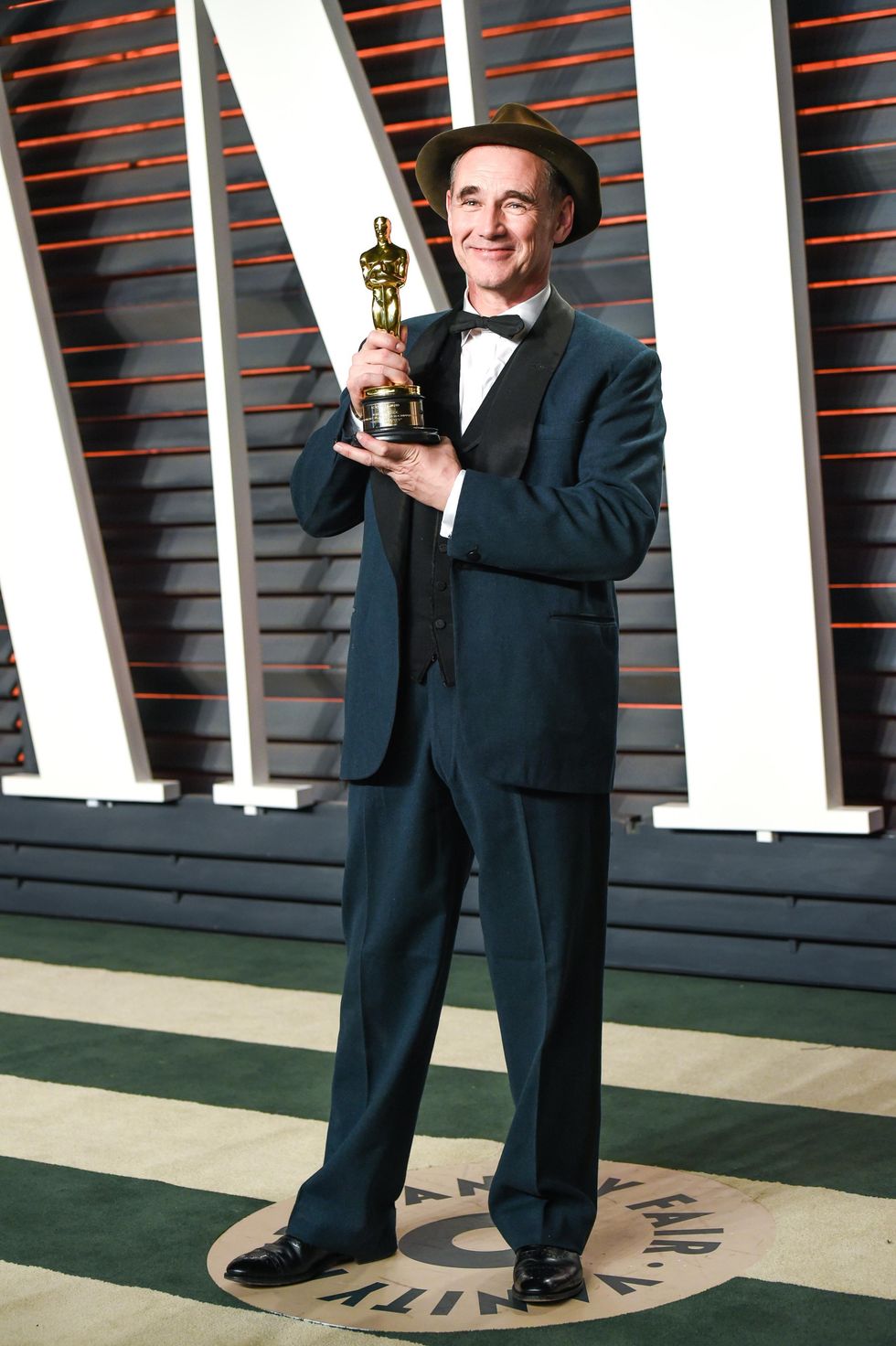 I was at a Tony Awards gala in 2014, right after Rylance had won his third Tony. He was sitting at a table, looking fairly accessible. I stood nearby, hovering, waiting to ask him for a very brief comment. I had heard he was eccentric but delightful, and I figured he'd be in a bouncy mood, having just won again. And I've never felt so much "Please go away"-level distaste in my life. He was shooting invisible darts at me with every molecule of his being, and I was a-tingle with awareness of that as I walked away in utter defeat. And I jokingly thought, "Oh, good. At least he knows who I am."