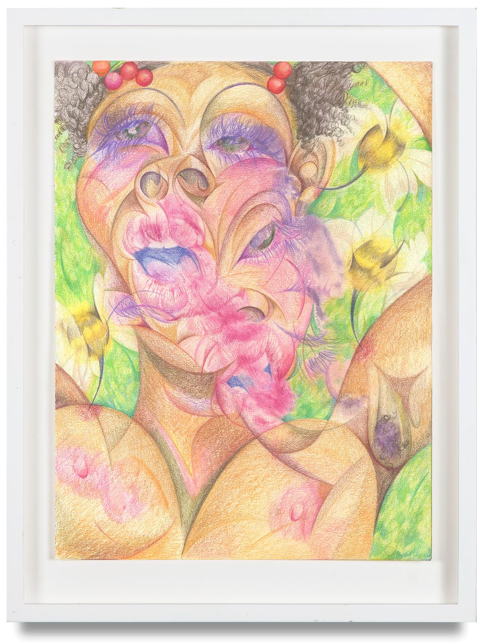 Colored pencil, makeup, oil pastel on paper, 14 x 11 inches