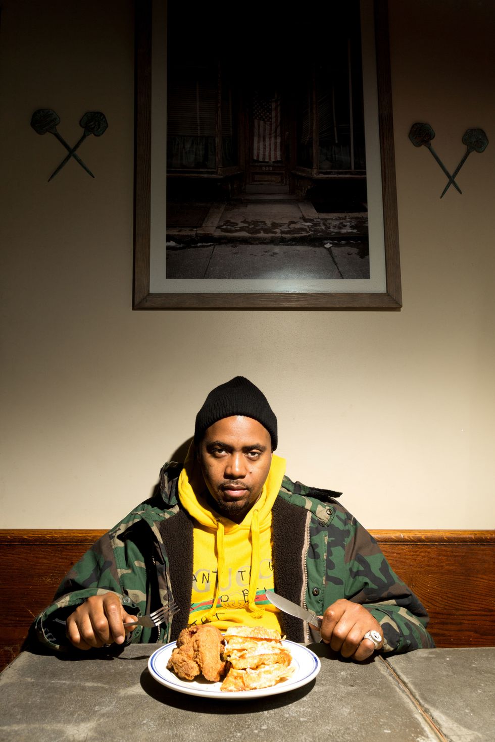 "Years ago in New York City, the nightlife in Harlem alone would go to the wee hours of the morning," Nas says. "People wanted to enjoy fried chicken, but it's also morning time. It's time for breakfast. Somehow those dishes wound up being the same dish. A lot of entertainers wouldn't want anything but chicken to eat at night, and then waffles in the morning. It stuck. You had lots of places in Harlem like Wells Chicken and Waffles, legendary places where your Duke Ellington's and your Louis Armstrong's, your greats of the Harlem Renaissance, would dine; it's always been a New York thing."