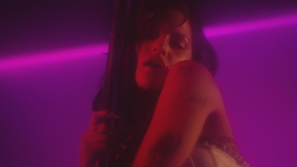 And if her words aren't convincing enough, the band's accompanying "Her Body" music video is proof of Bechtel's undeniable sex appeal. The Dana Boulos-directed visual is simple and powerful, featuring Bechtel alone and in lingerie while she dances underneath a neon, hazy glow. Every video still is stunning, with Bechtel drenched in a wash of technicolor filters as she thrashes her hair and writhes across the floor.
