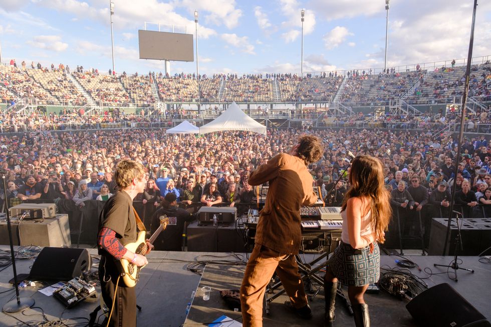 Ian Richard Devaney (lead vocals, guitar), Aidan Noell (synthesizer) and Alex MacKay (bass guitar) draw a massive crowd during their Kilby set on the festival’s Mountain Stage, which puts them in the center of a stadium. PAPER ran to catch their glittering synth-ballad "Weak In Your Light," tripping over other fans with smiles spread across their faces. It was worth it.
