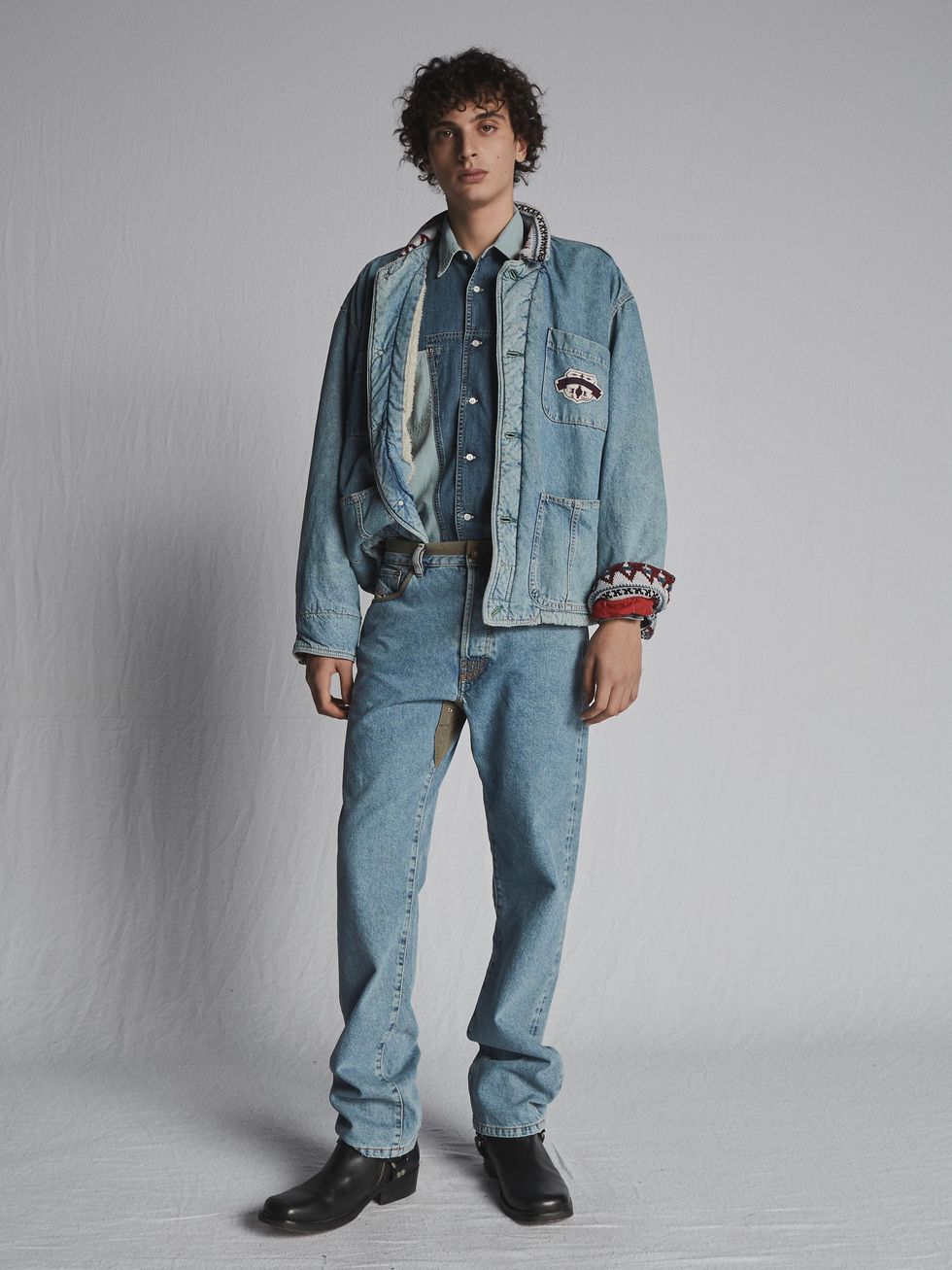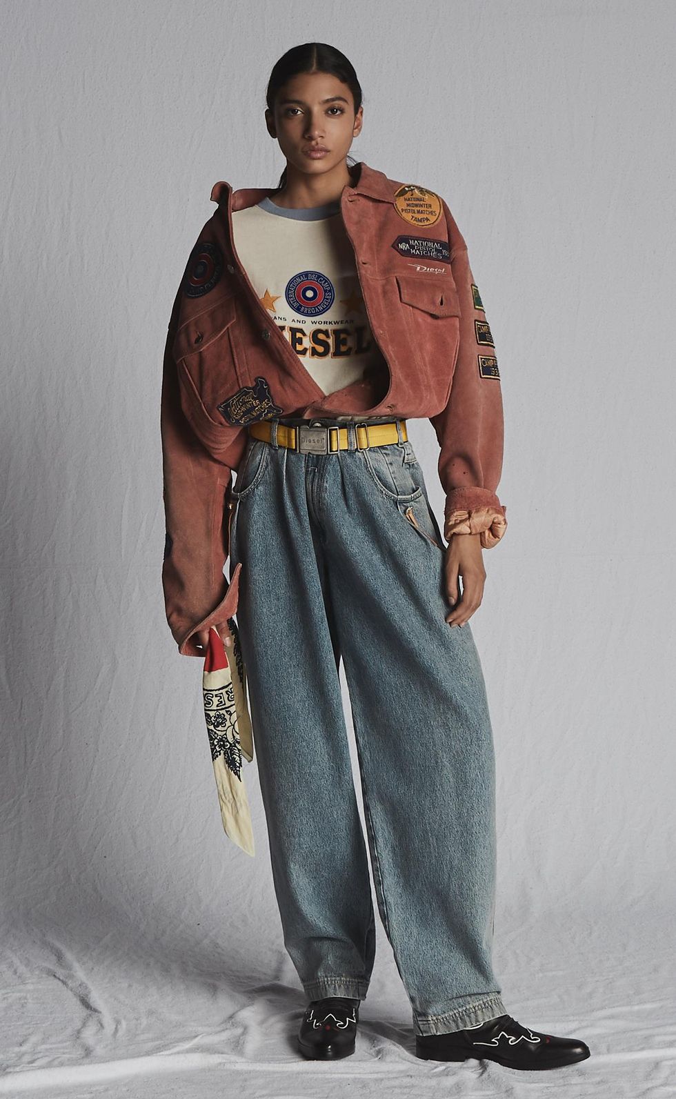 Diesel is pulling from their archives for a special Diesel x Diesel capsule inspired by the brand's archives. The collection consists of 24 pieces from the '80s and '90s with 21st century treatments including college varsity jackets and raglan tees, vintage denim jackets with a southwestern flair, baggy, pleated jeans, denim workwear jumpsuits, American lumberjack shirts and more. Available globally in Diesel stores, online and specialty retailers starting on March 29th.