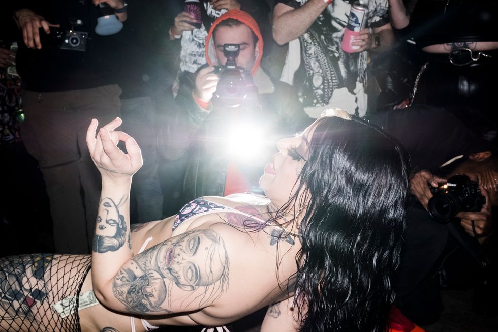 The confrontational element is heightened by the lack of a ring. The audience forms a moving perimeter around the wrestlers, often jostled to safety by the photographers on the frontlines to avoid flying objects and bodies. For Quevedo, this physical openness reflects the essence of the subgenre itself: “Physically, there's no barrier. No one's shutting anybody out. If you want to be here, we're fucking glad that you're here.”