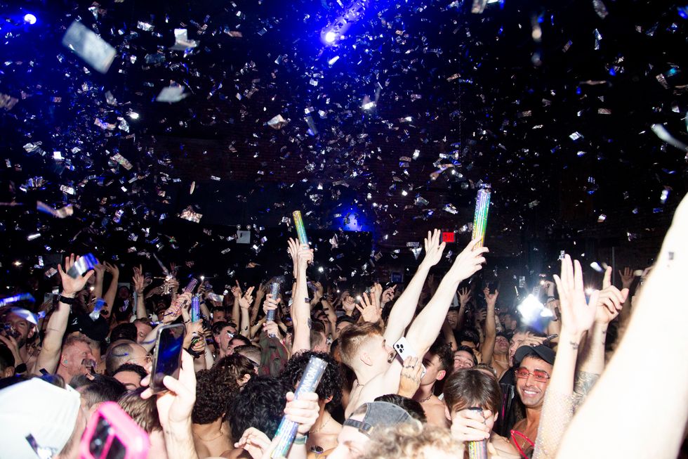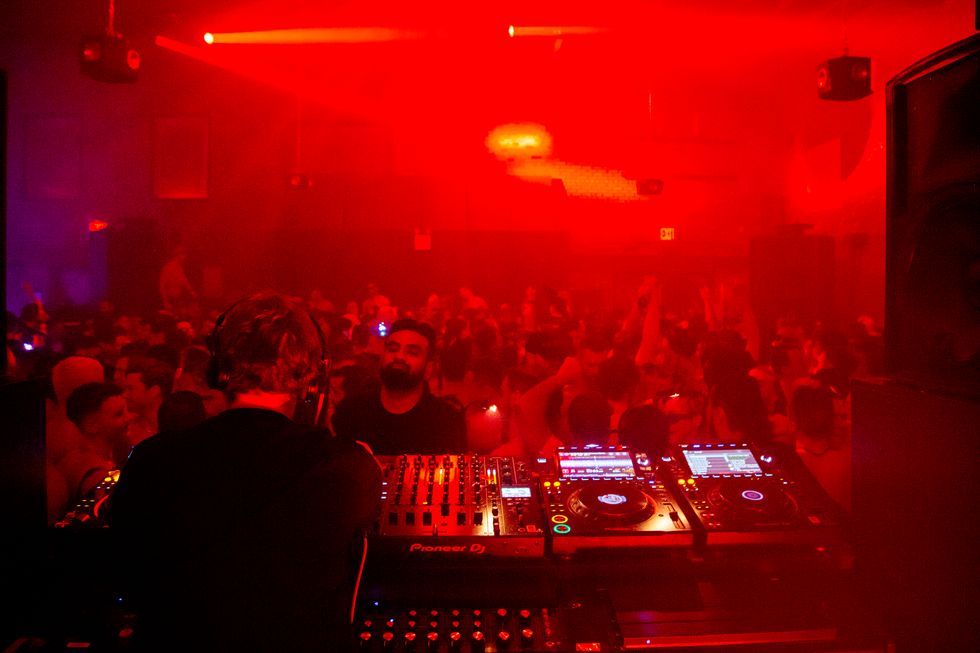 Now, merely a few times a year, the party takes over a monster of a warehouse in Brownsville. While the party’s predecessor had a darkness to it like heavy fog, pitch black dance floors with cool white strobe and furious angry techno to match, the new series is the opposite: advanced lighting rigs in purples, blues, yellows and pinks breathe a sense of PLUR into the Best Buy-sized main room. Instead of the previous carnage evoked, [REDACTED’s] focus is camp. Instead of former themes like Death and the Socialism Manifesto, the vibes now surround humorous ketamine-humor’d concepts like the fictitious Brownsville Plaza, a recent addition to the neighborhood that will add a Rainbow-painted helipad, three Equinoxess and a Sweetgreen 2. On the second floor of the rave, the stripped warehouse was dressed into an abandoned office space with cubicles covered in office supplies and asbestos ceiling tiles to match. What makes [REDACTED] such an incredible party is that when the overarching theme is to basically get as fucked up as possible, the entire city’s queer population comes more-than-prepared to do their part: gathering their drugs, serotonin and demons for weeks in advanced... all so that they too can have [REDACTED] (the name is something one can have all of and none of... at the same time.)